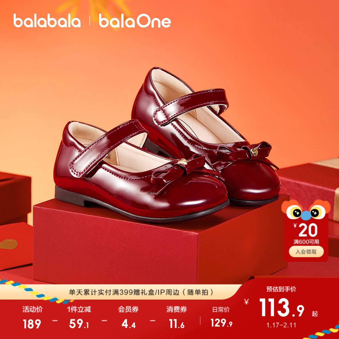巴拉巴拉童鞋女童公主鞋2026新春秋鞋子蝴蝶结甜美潮流红色小皮鞋