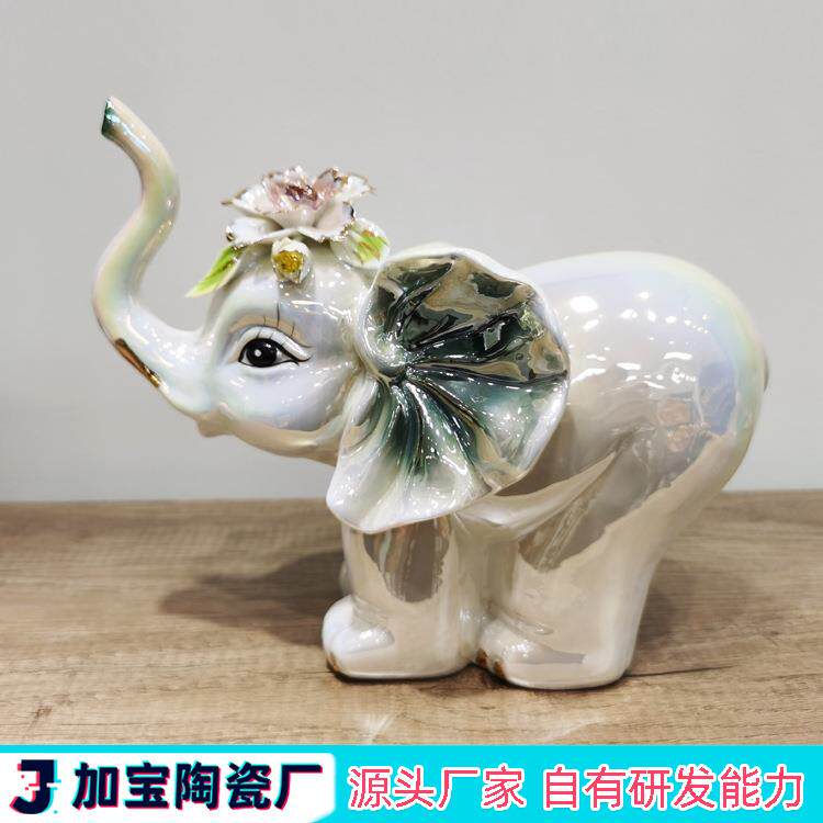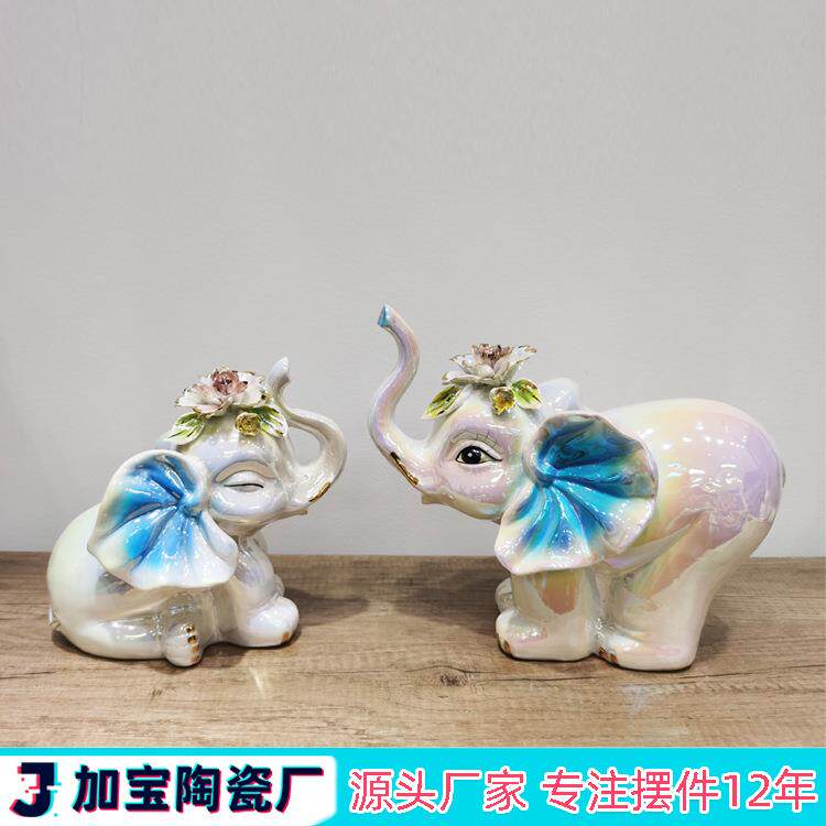 工厂直销陶瓷工艺品家居摆设软装饰品 一对豪华陶瓷大象桌面摆件