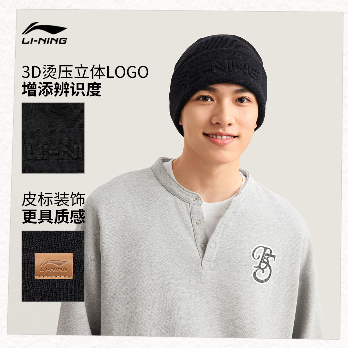 李宁针织帽男女士2025新款官方正品秋冬防风保暖百搭运动毛线帽子