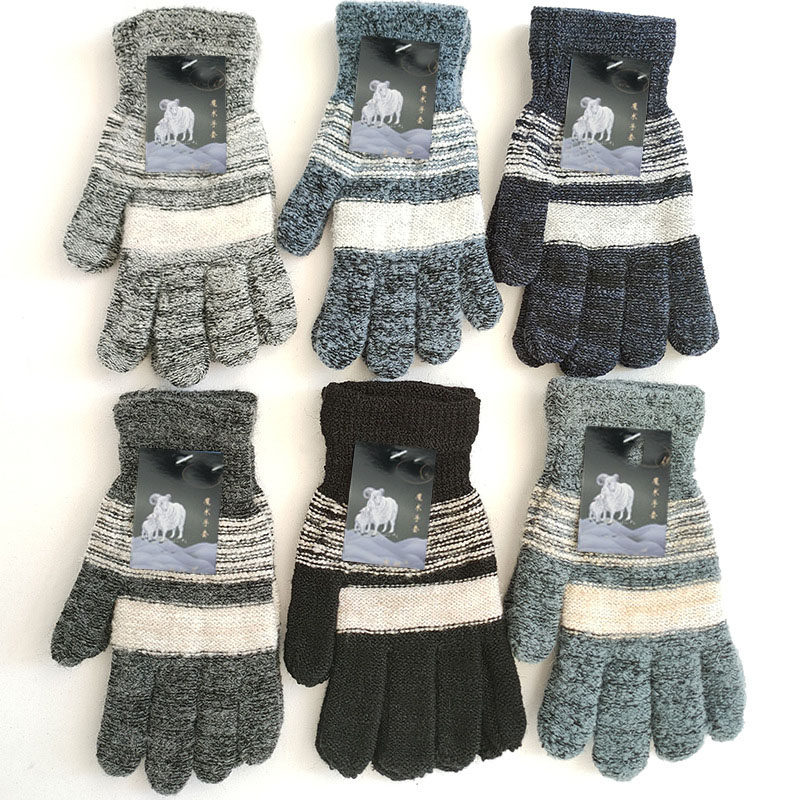 【随机1双】冬季时尚五指加厚保暖针织手套