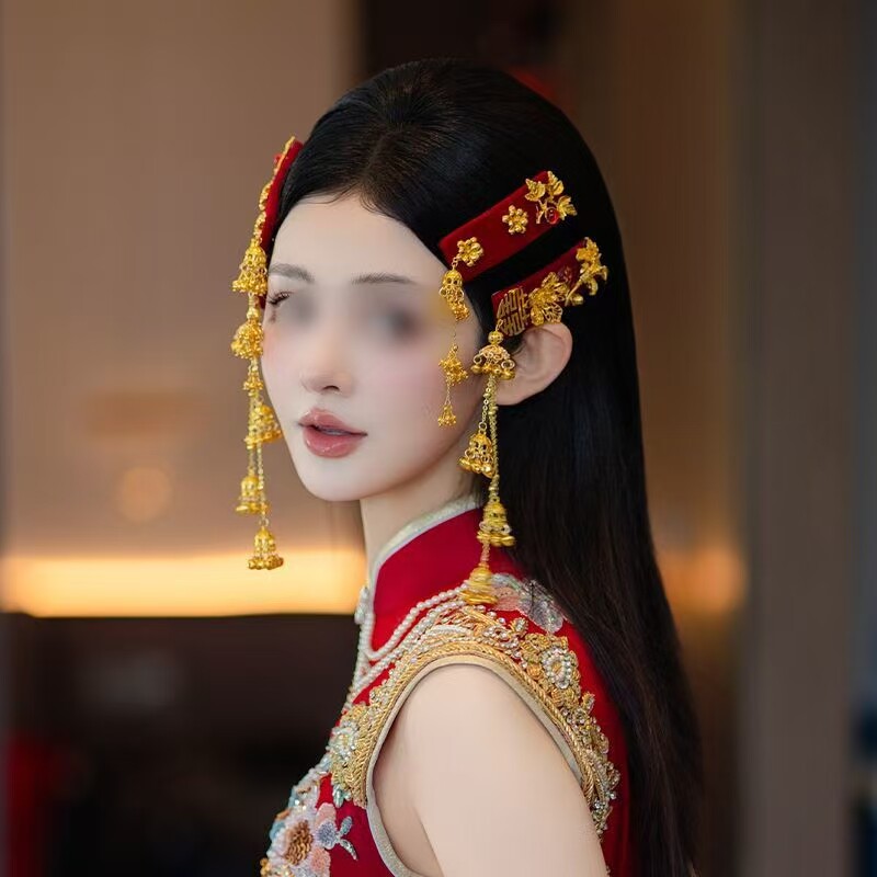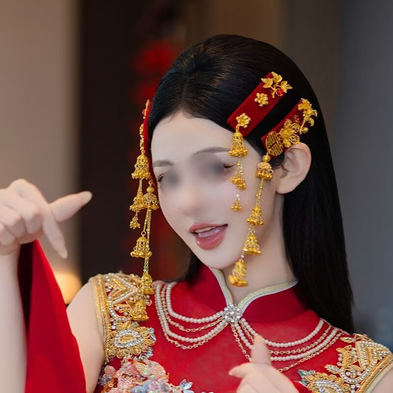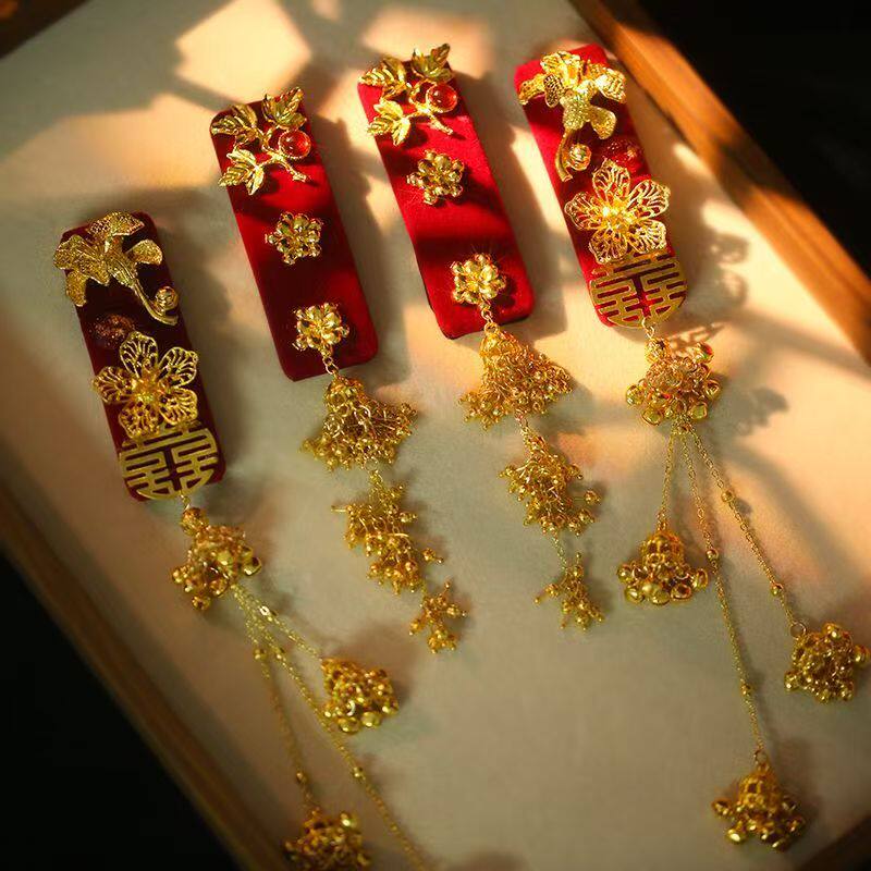 易梦玲同款红色夹边风铃流苏秀禾发夹龙凤汉服马面中式发饰MT064