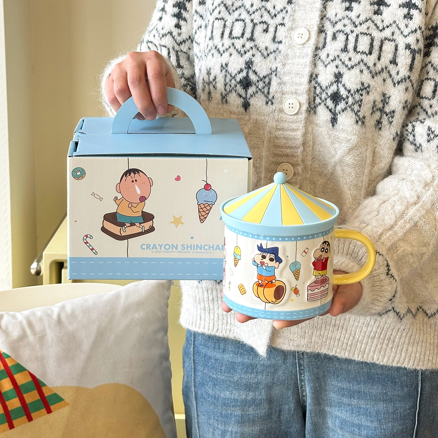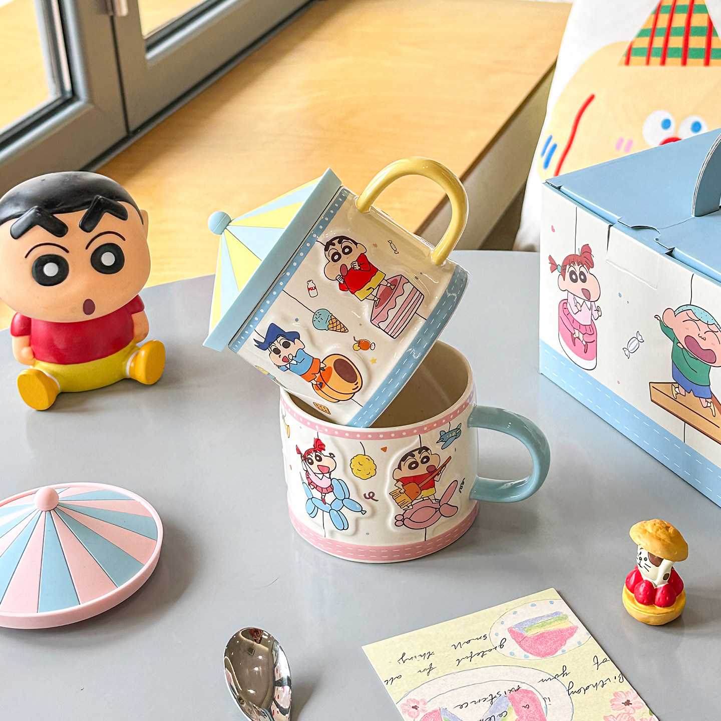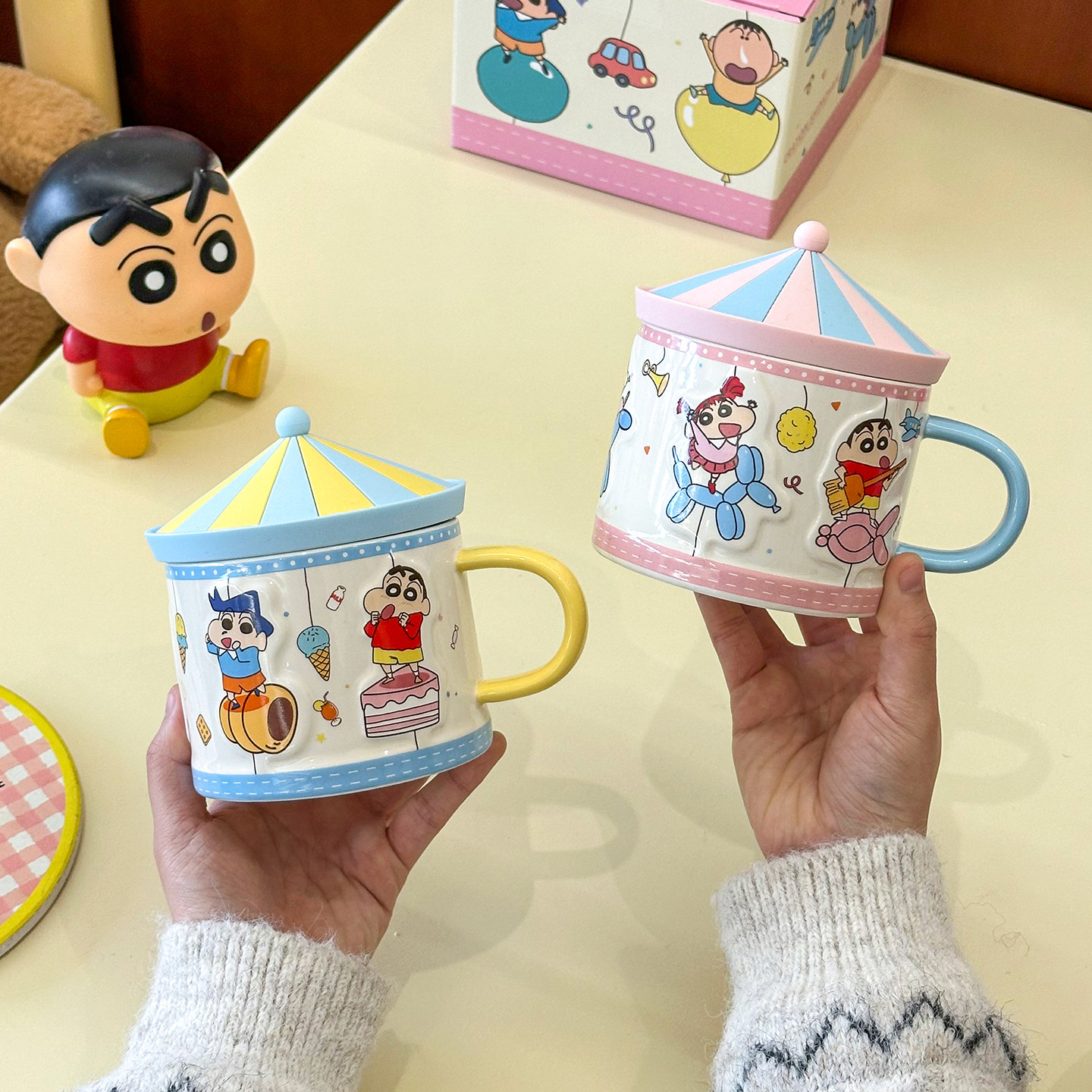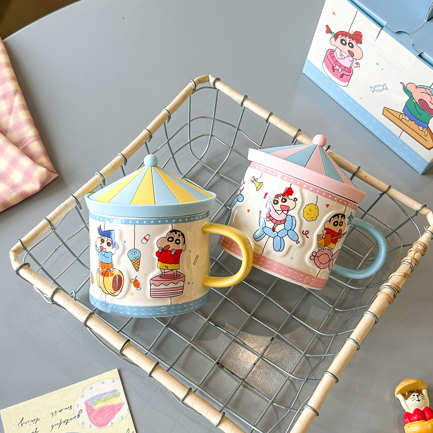 舍里蜡笔小新带盖陶瓷马克杯办公室水杯家用牛奶咖啡杯可爱伴手礼