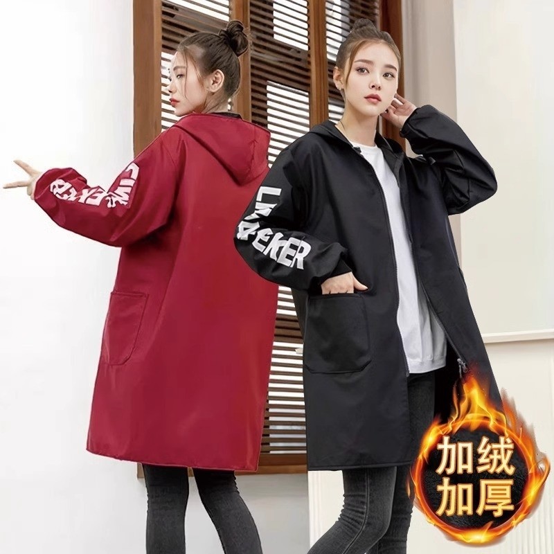冬季加绒罩衣大人加厚长袖围裙防水韩版女时尚外套家用工作服定制
