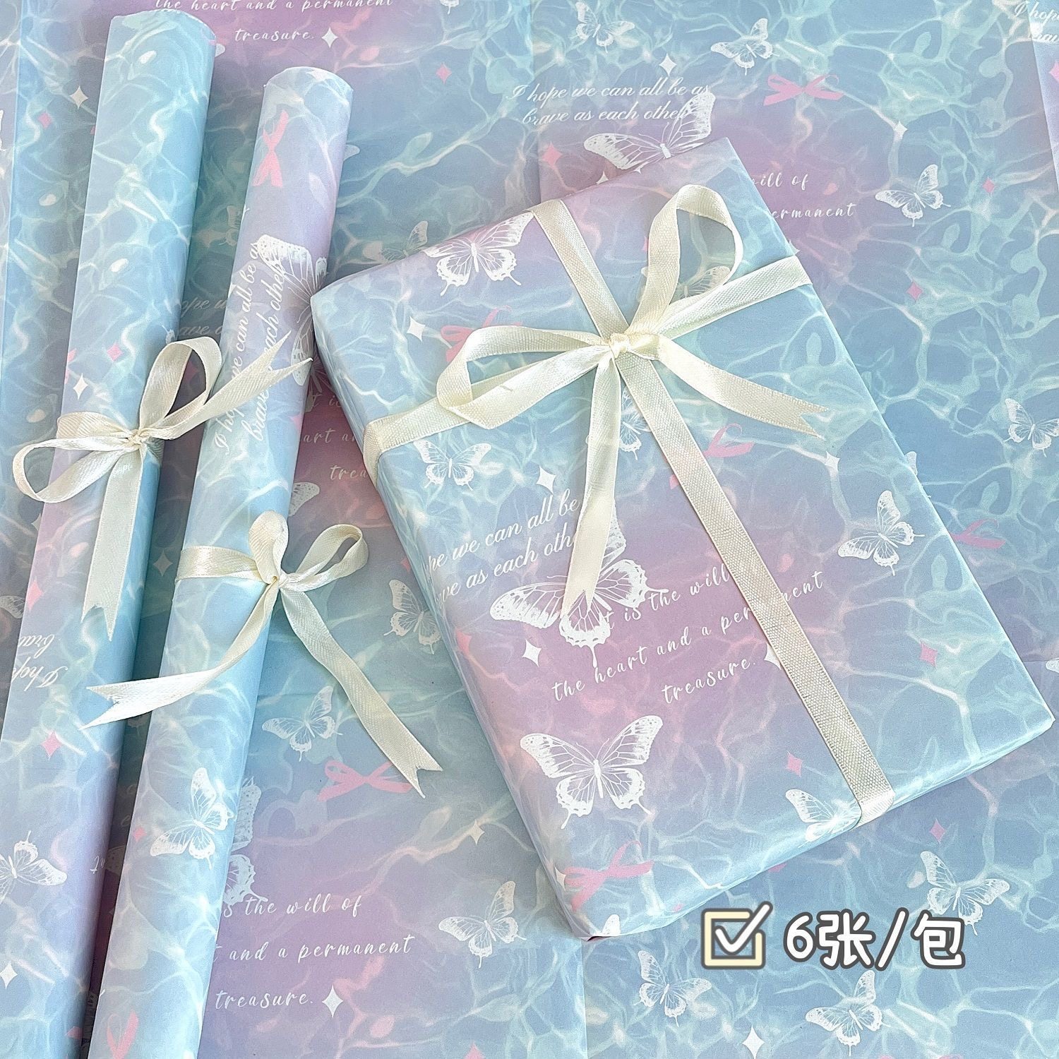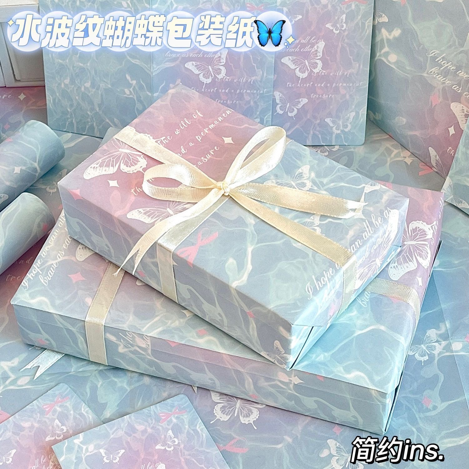 水波纹蝴蝶包装纸高颜值礼品包装纸书皮纸大尺寸鲜花礼物打包纸
