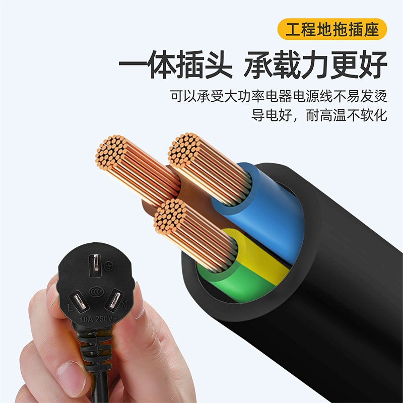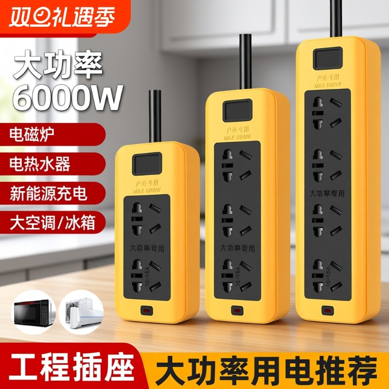 大功率插排接线板5000w6000w专用家用工程插座板带线16a10a通用