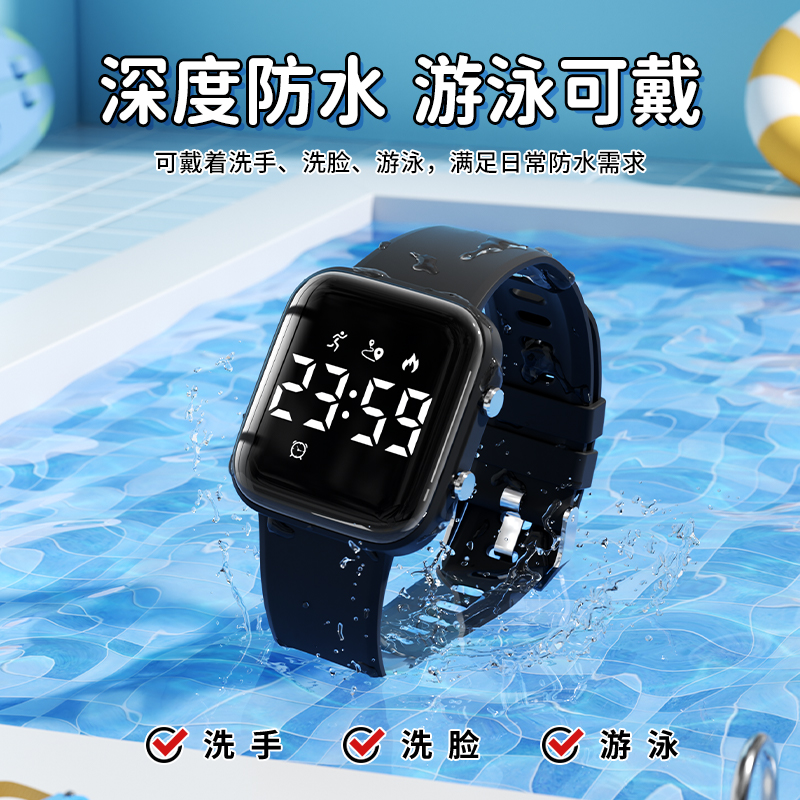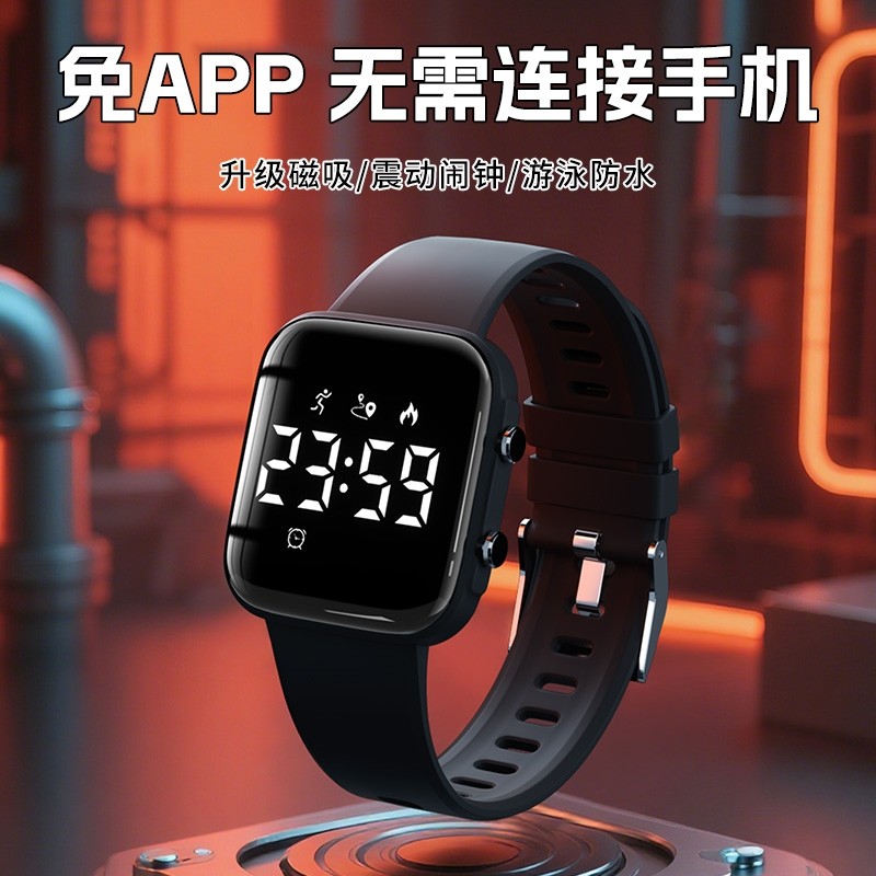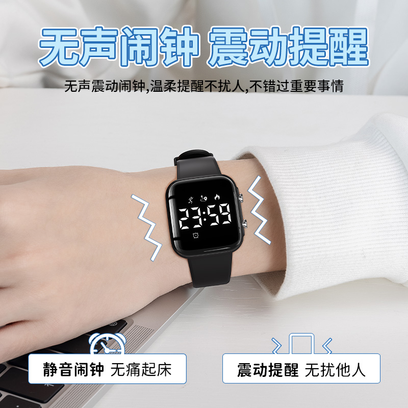 电子手表男初高中学生女无声震动闹钟静音儿童运动只看时间考试环