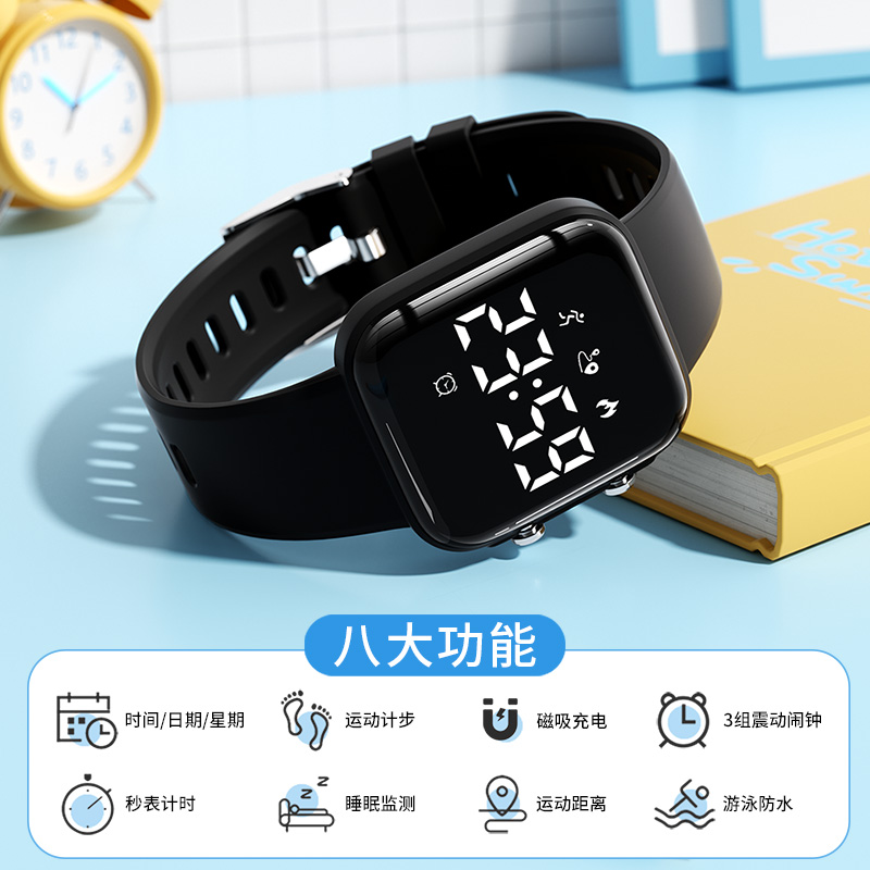 电子手表男中学生女无声震动闹钟起床神器智能黑科技运动手环考试