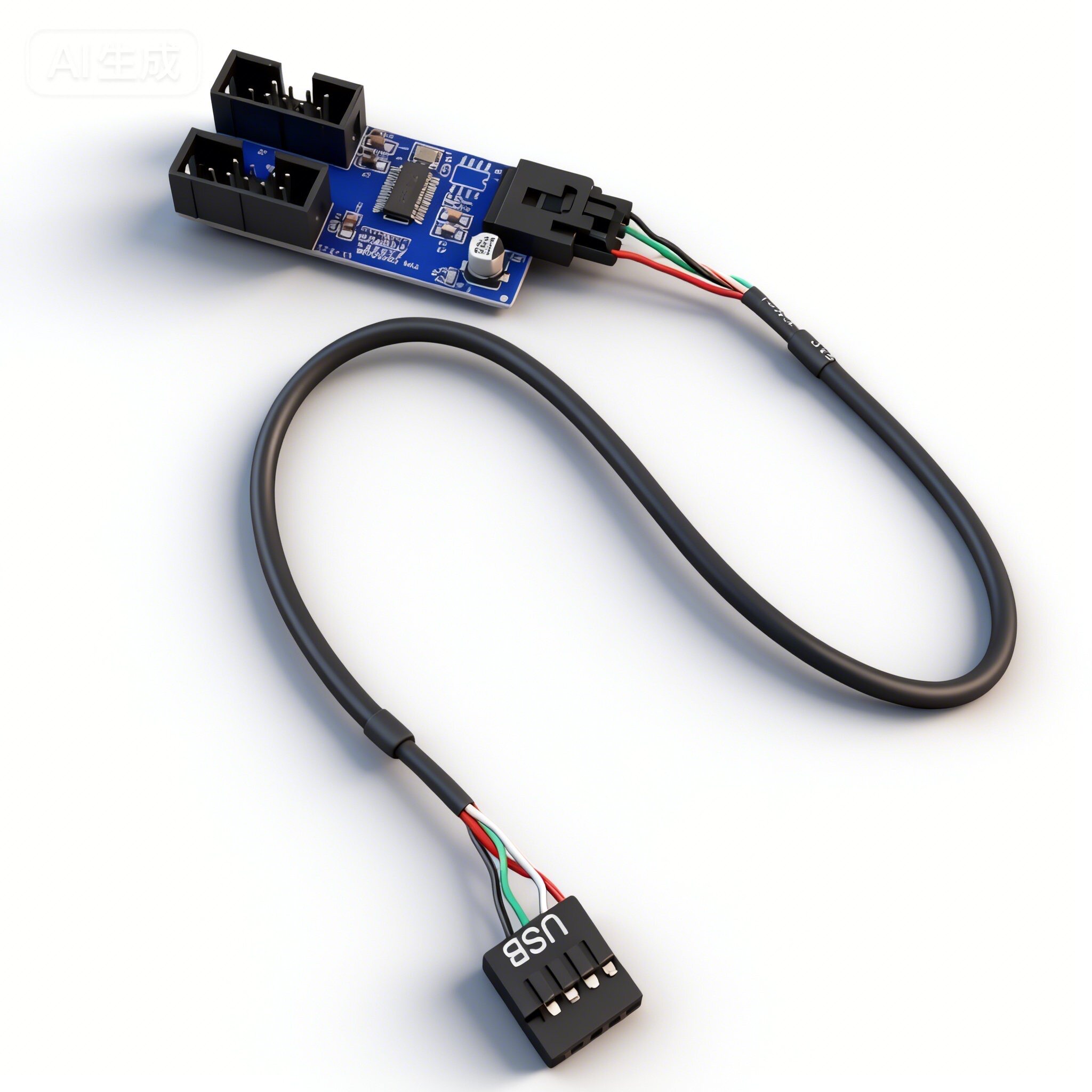 电脑主板USB2.0 9针一分二扩展线 9pin一拖二转接线传输稳定