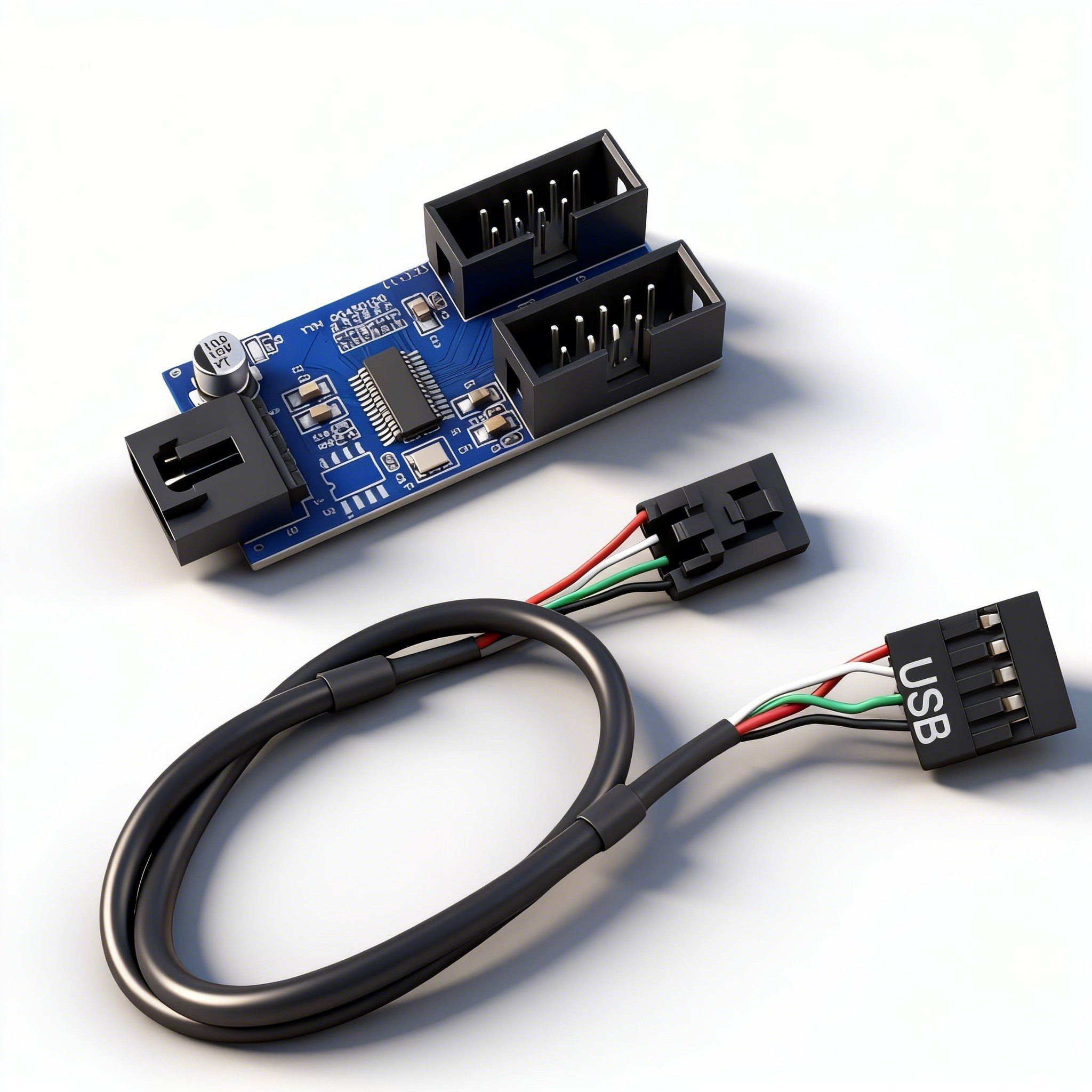 解决主板USB九针接口不够用一拖二转接线