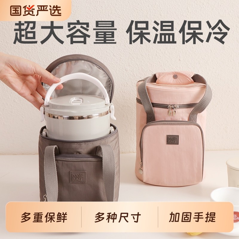 保温饭盒袋圆形保温桶手提袋上班族便携学生加厚铝箔便当大容量包