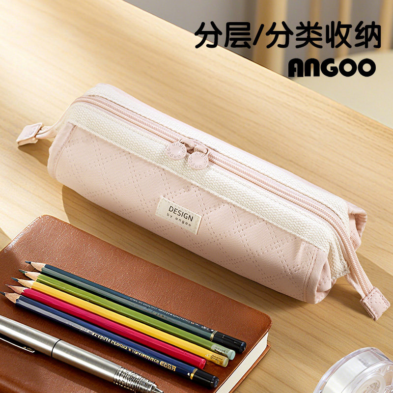 安蔻中小学生笔袋大容量分层分类收纳文具盒学生简约多功能铅笔盒