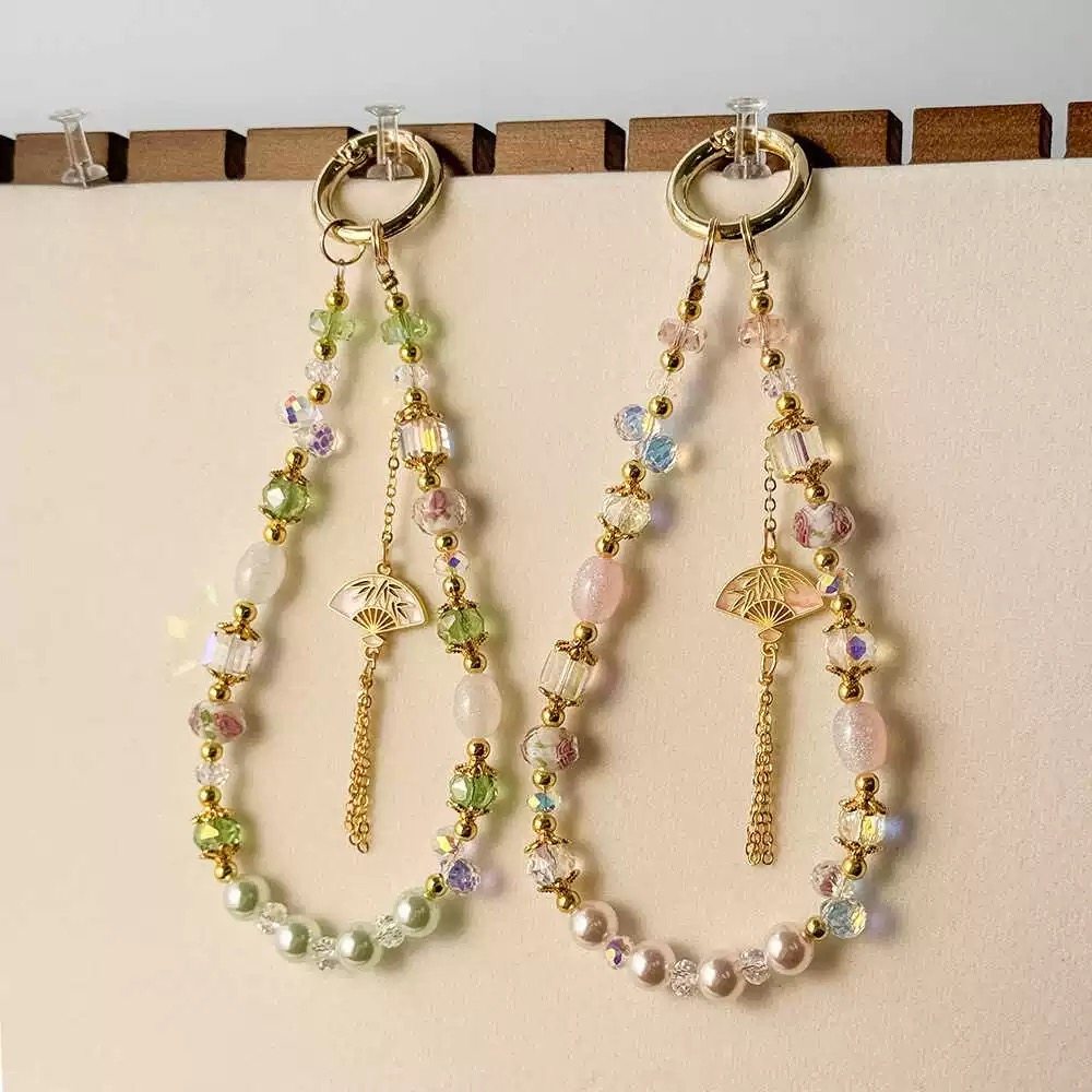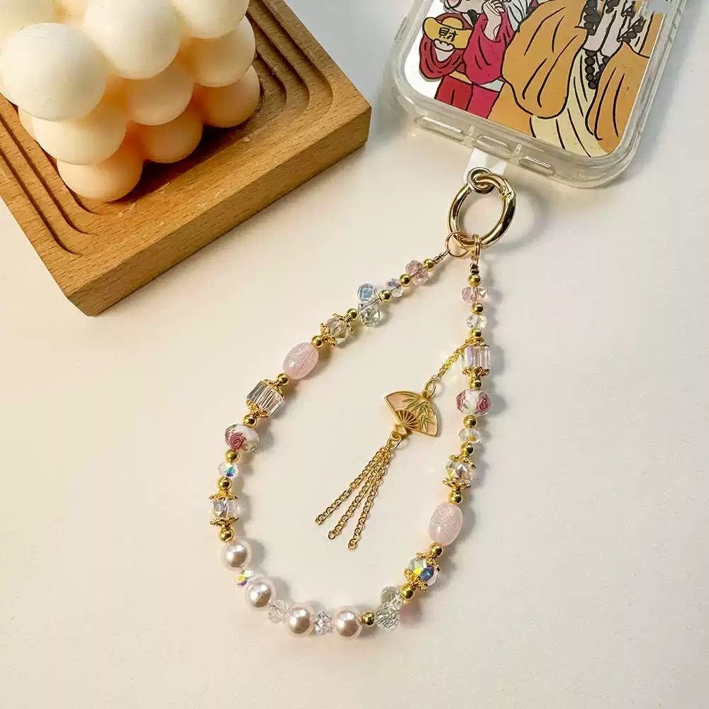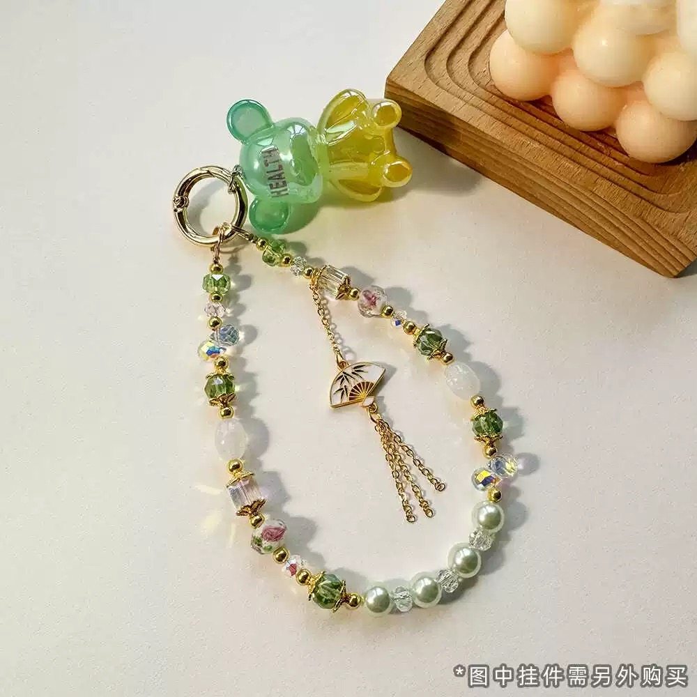 中国风流苏串珠手提链手腕短挂绳带夹片壳钥匙扣包包挂件女潮
