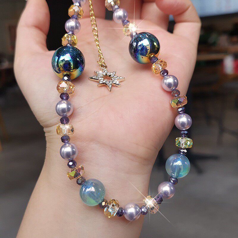 时尚奢华水晶珍珠手机链短款挂件镶钻流苏钥匙包包挂饰手机壳挂绳