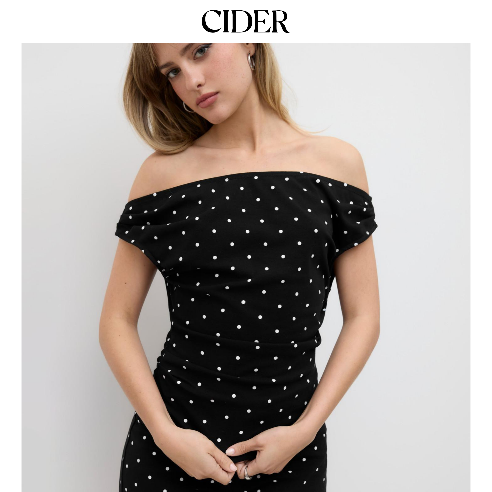 CIDER 棉露肩一字肩T恤波点褶皱打底衫上衣女装114265749