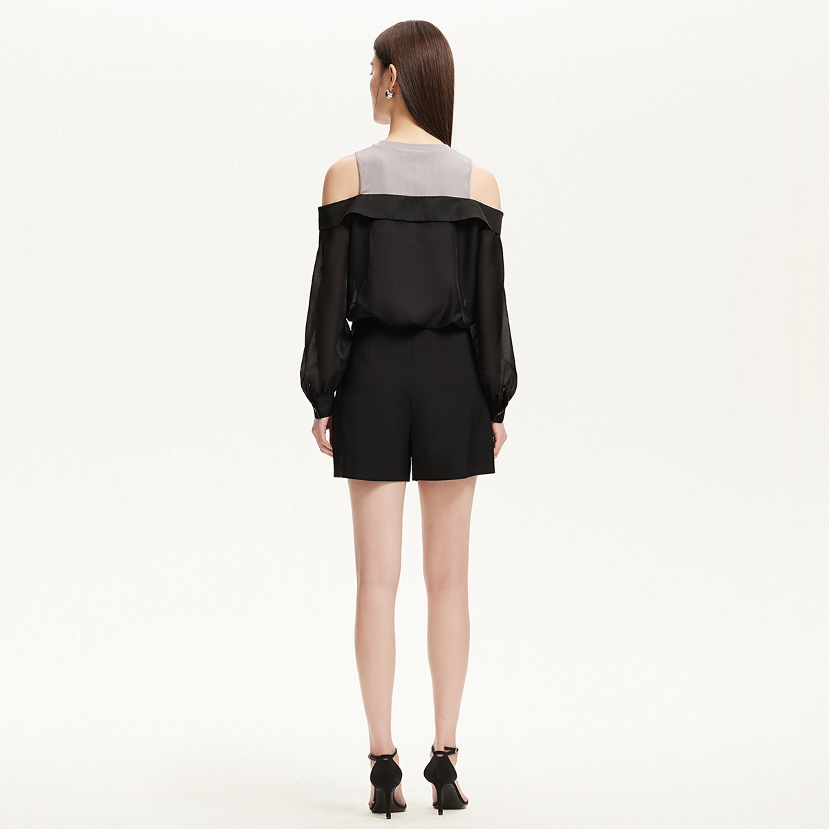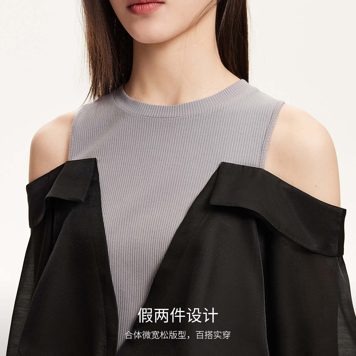 Vero Moda上衣女2025秋冬圆领拼接露肩网纱上衣325251004