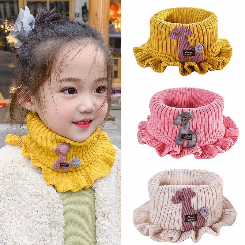 毛线针织儿童围脖卡通小鹿秋冬保暖护颈围巾新款防风宝宝假领脖巾