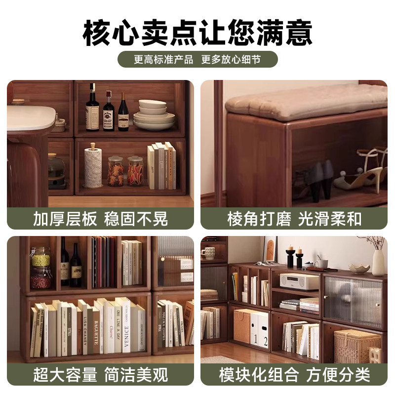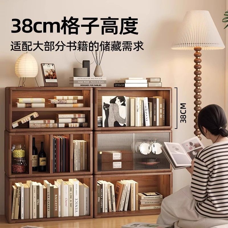 盼居书架客厅落地书柜矮柜儿童格子柜自由组合实木电视柜储物榉木