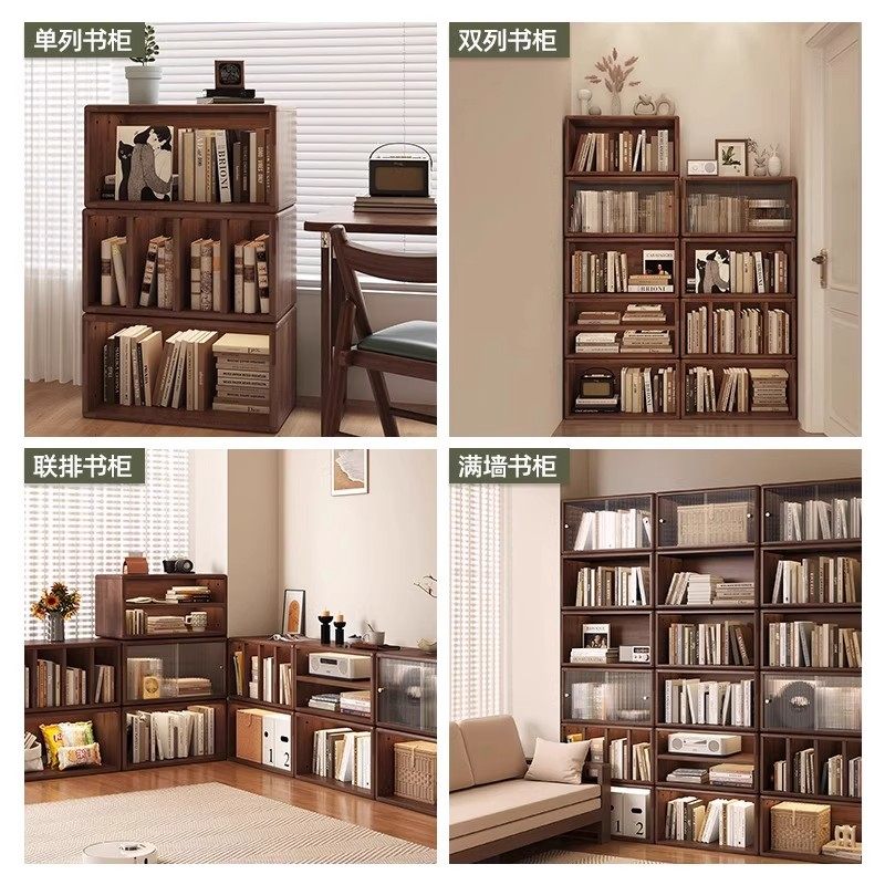 实木书架多功能自由组合柜电视柜收纳书柜飘窗柜落地置物架格子柜