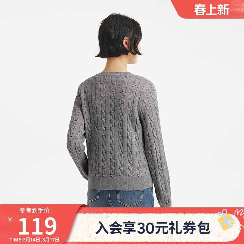 热风女士开衫针织衫2025年冬季新款绞花老钱风毛衣