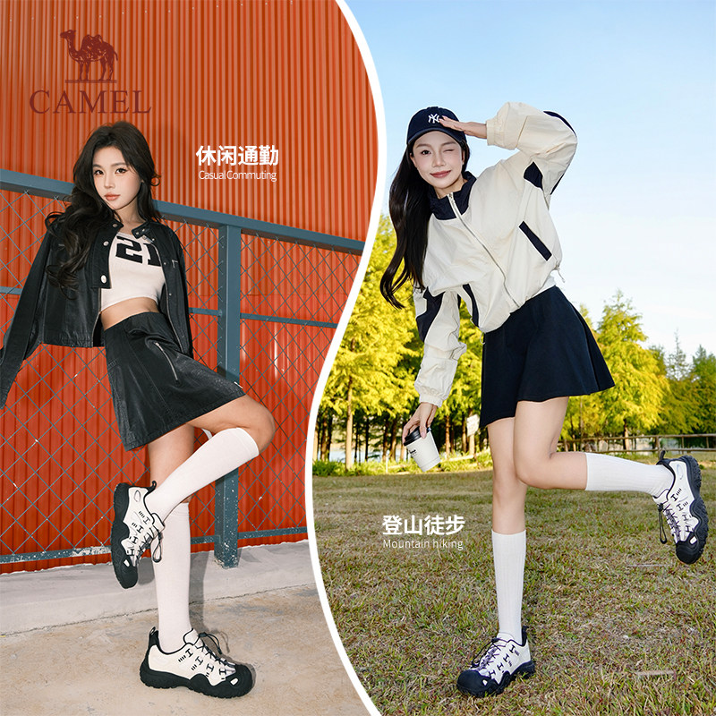 骆驼丑萌鞋女鞋2025秋季新款运动鞋女户外徒步登山鞋加绒老爹鞋子