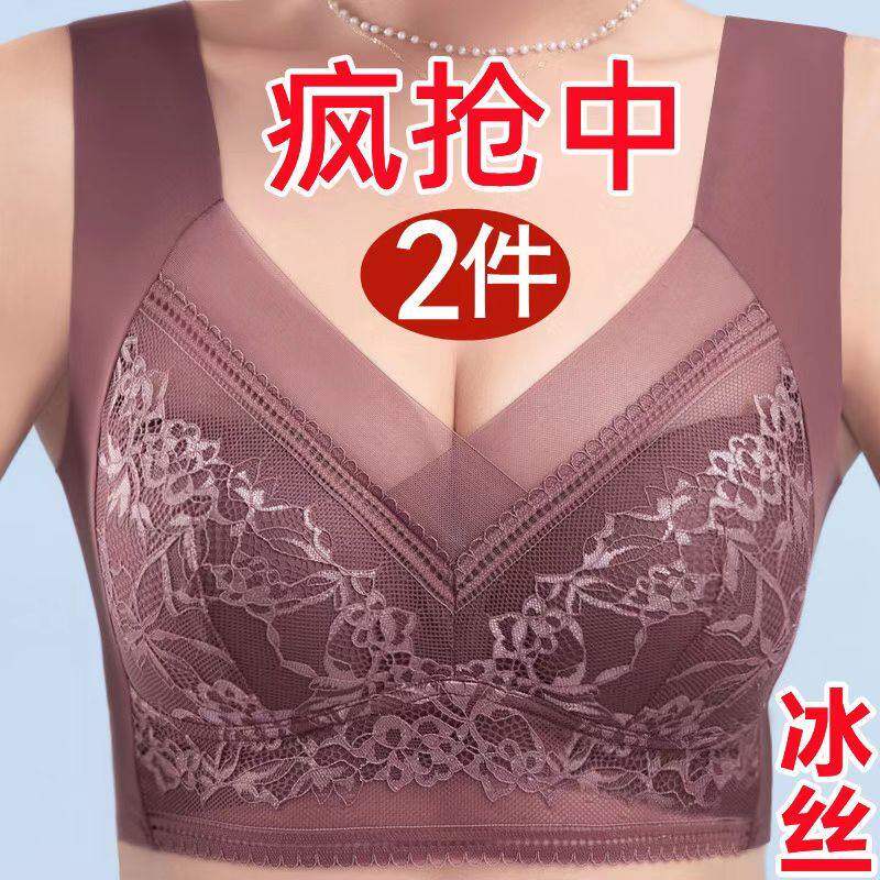 裸感冰丝薄款文胸聚拢上托大胸显小抹胸式性感蕾丝内衣无钢圈美背
