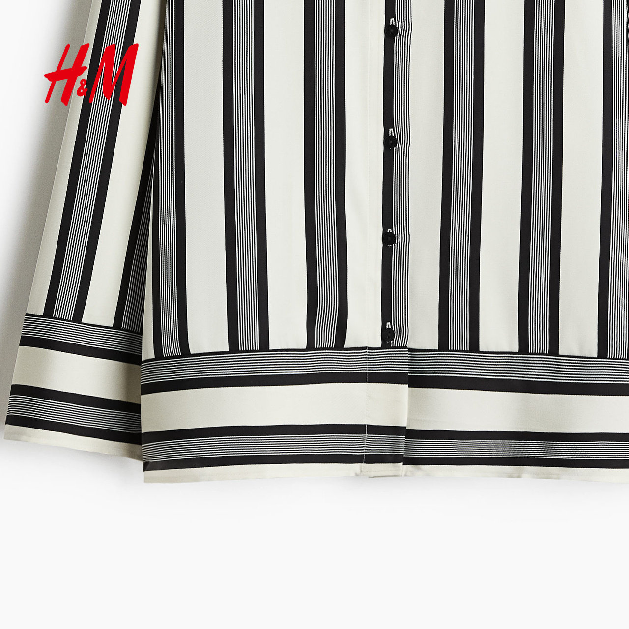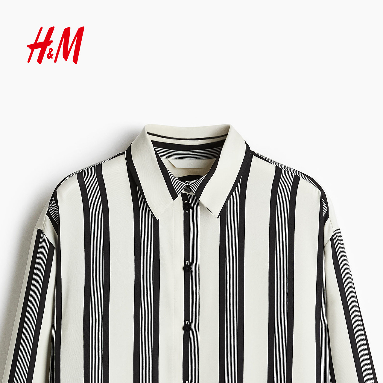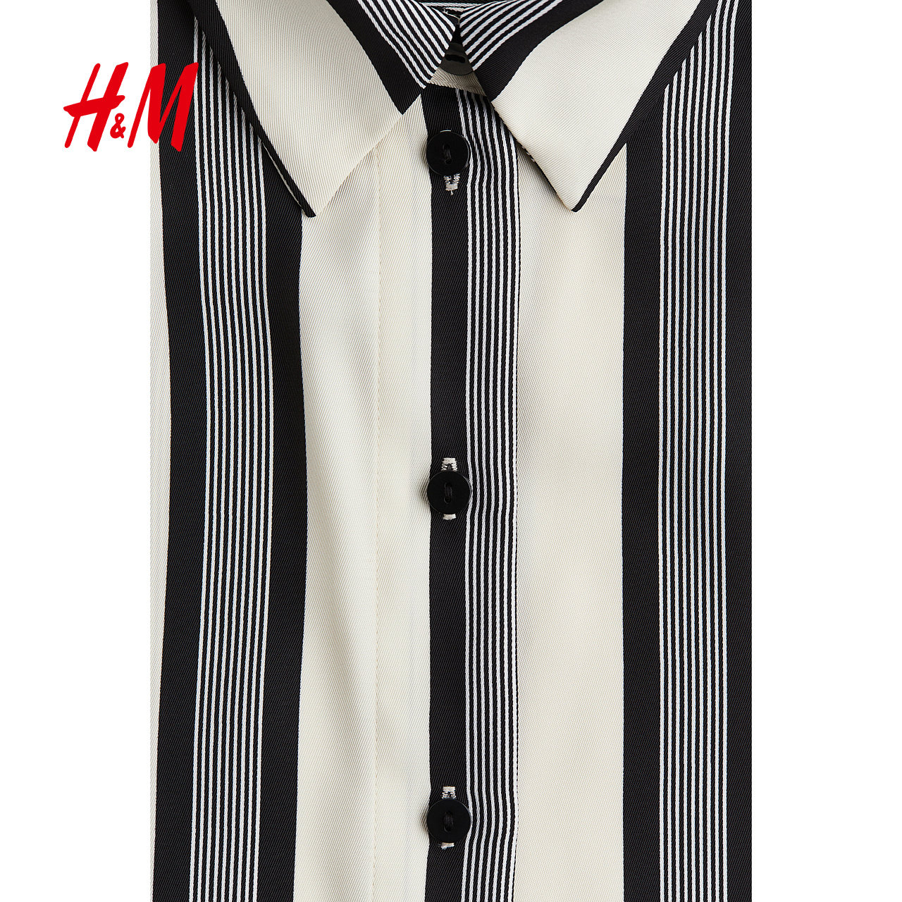 HM女装衬衫春夏智性条纹设计感条纹内搭翻领复古格纹衬衫1241165