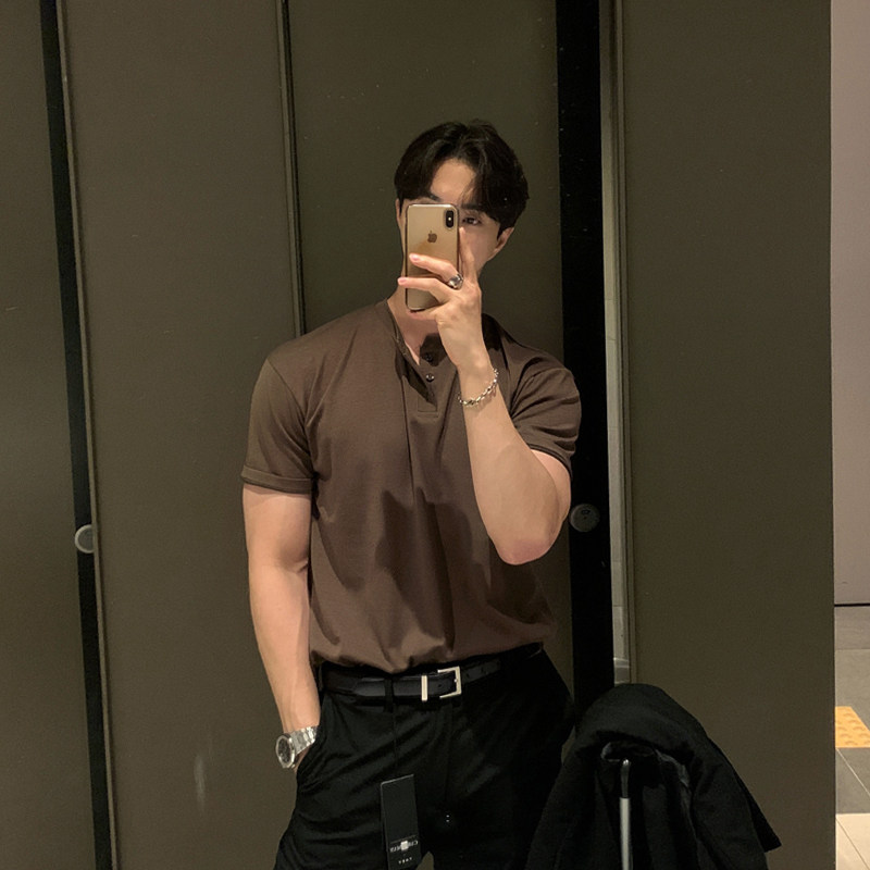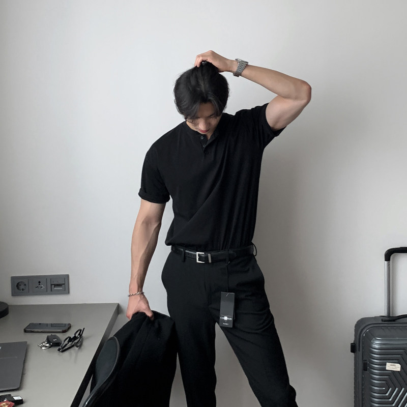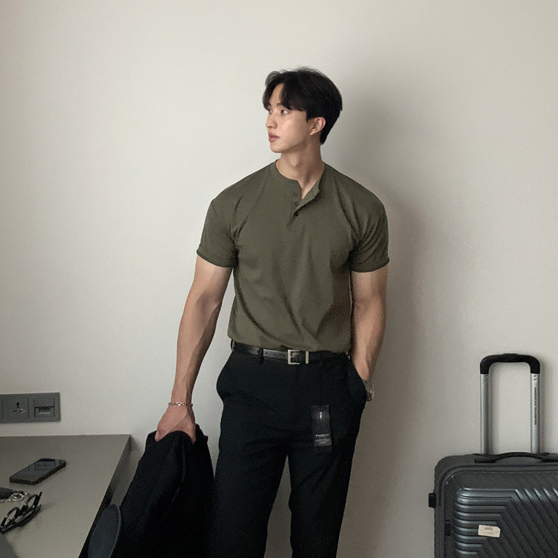 碧舍男士韩版小众透气亲肤亨利衫T恤百搭休闲高街品质上衣短袖潮t