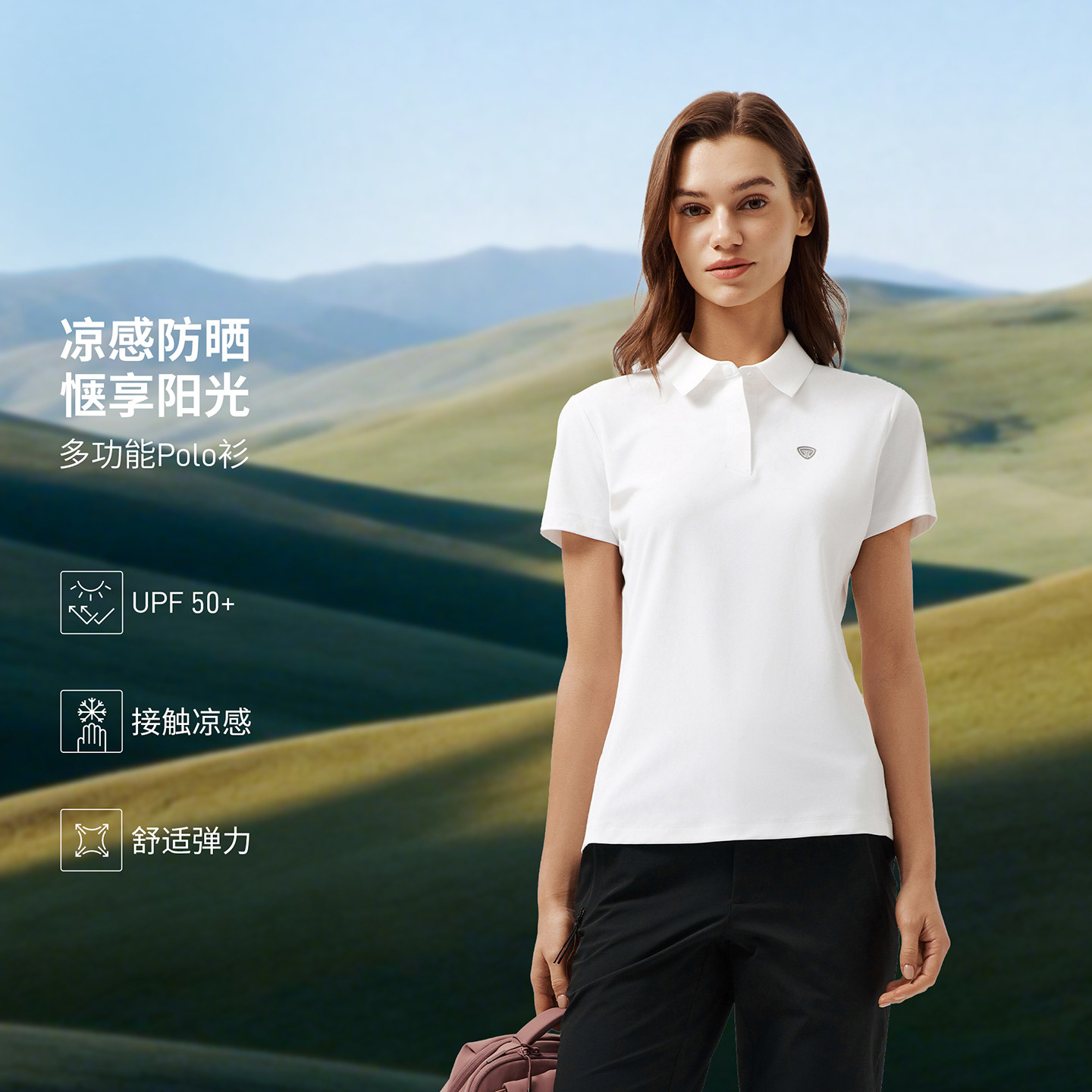 坦博尔户外休闲运动风防晒速干T恤女士短袖翻领POLO衫凉感UPF50+
