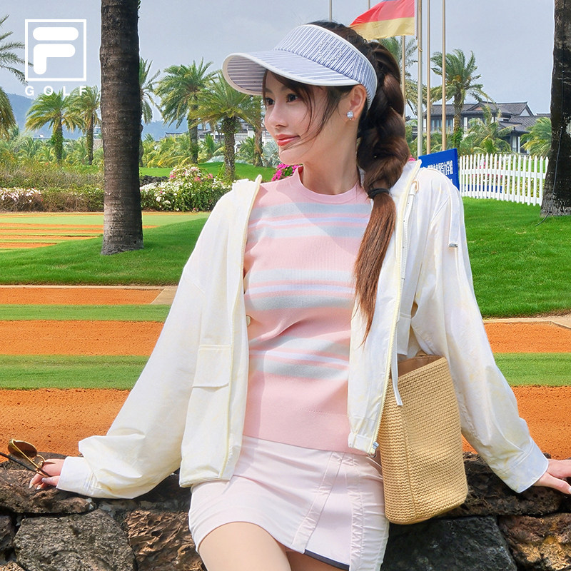 何沐妮同款FILA斐乐官方条条衫编织衫女夏季新款高尔夫运动毛衣