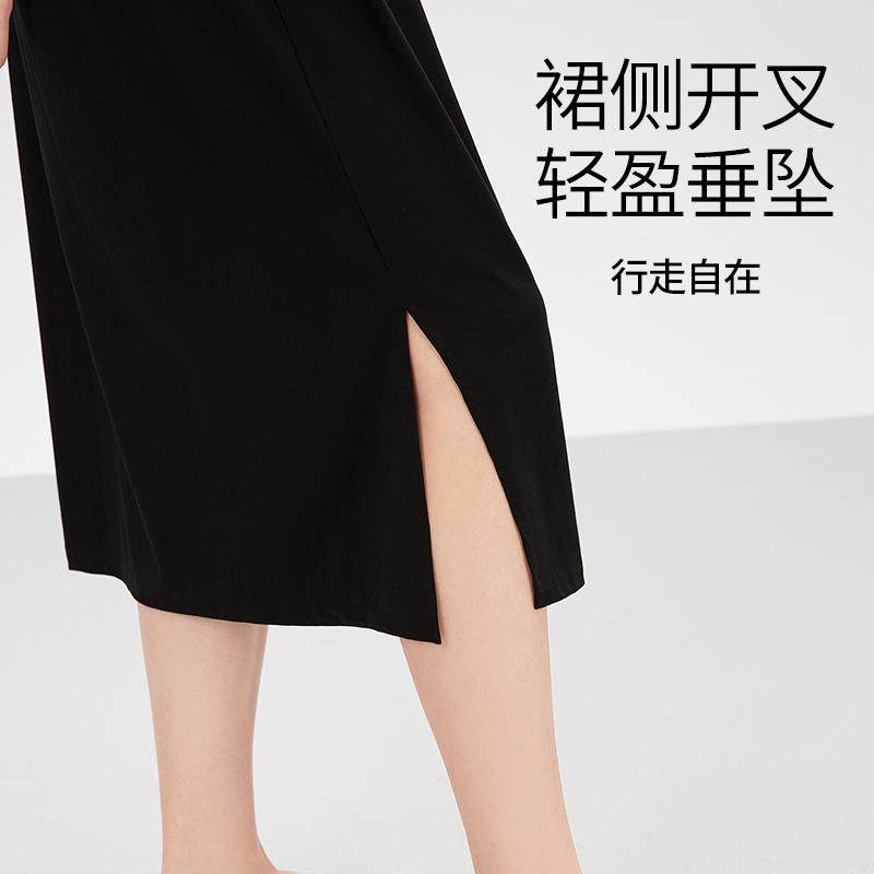连衣裙女莫代尔短袖睡裙夏薄款打底裙外穿宽松百搭家居服大码长裙