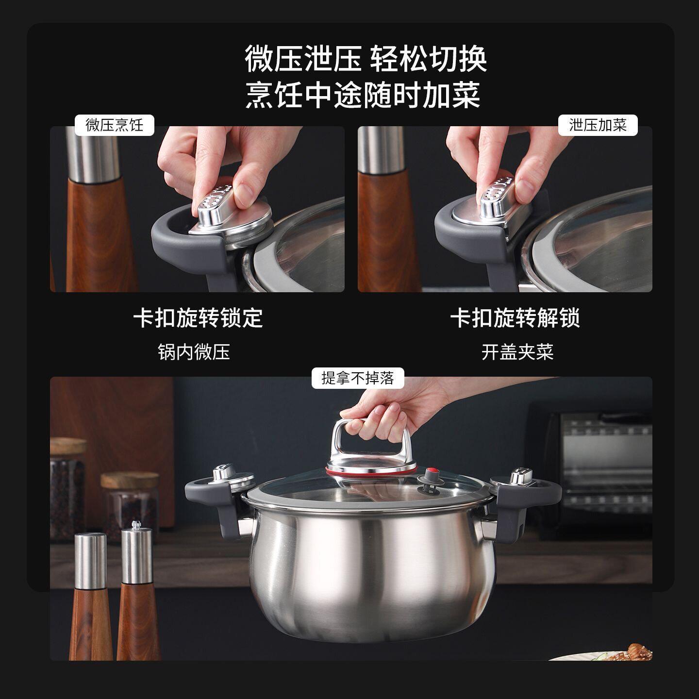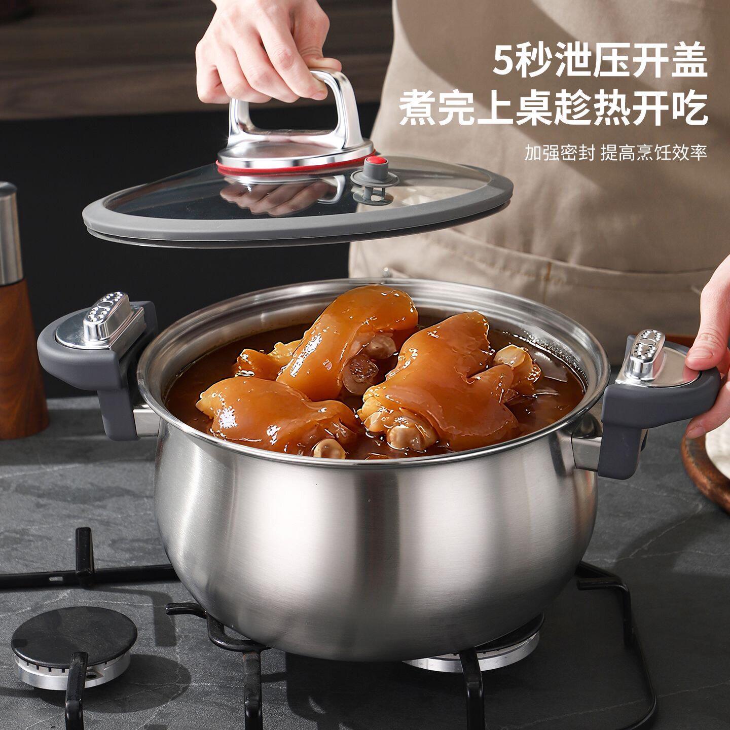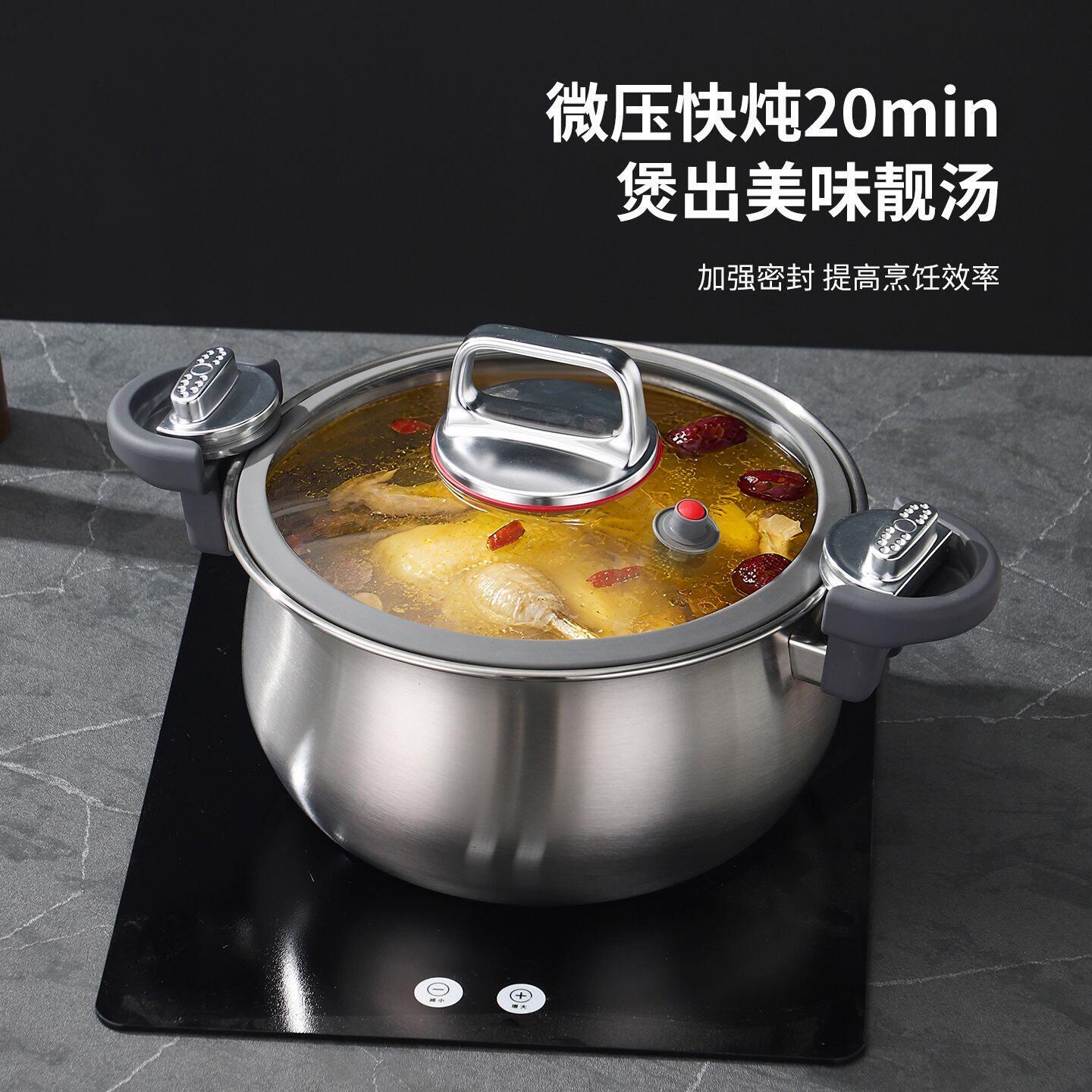 苏泊尔德国不锈钢微压蒸锅家用无涂层炖煮汤锅微压力锅燃气电磁Q
