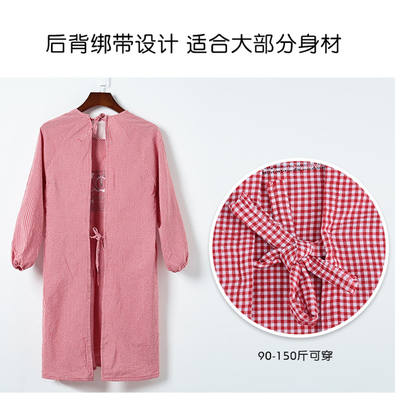 2026日本新款棉麻长袖围裙家用厨房透气罩衣女耐磨防污做饭工作服