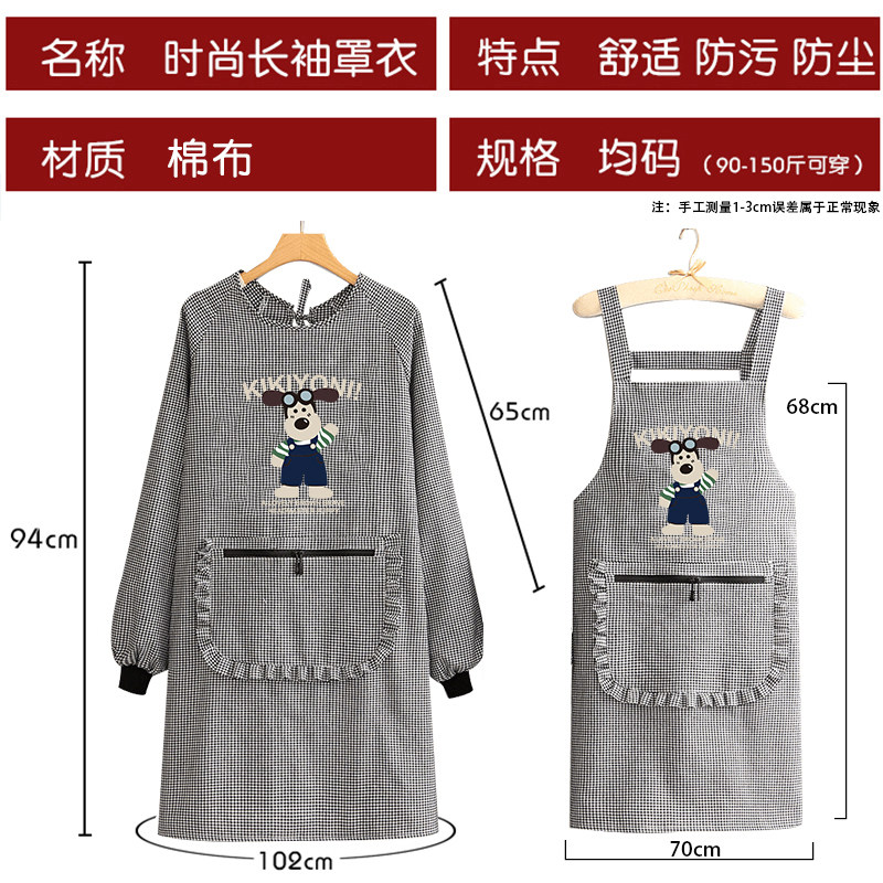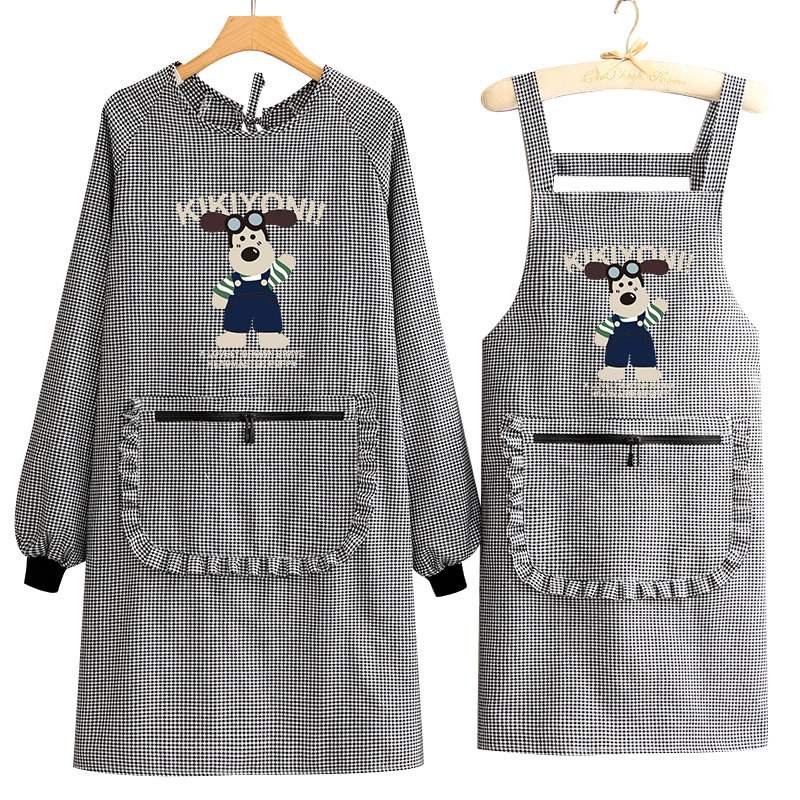 简约卡通围裙新款厨房家用透气长袖罩衣女防污耐磨做饭护衣工作服