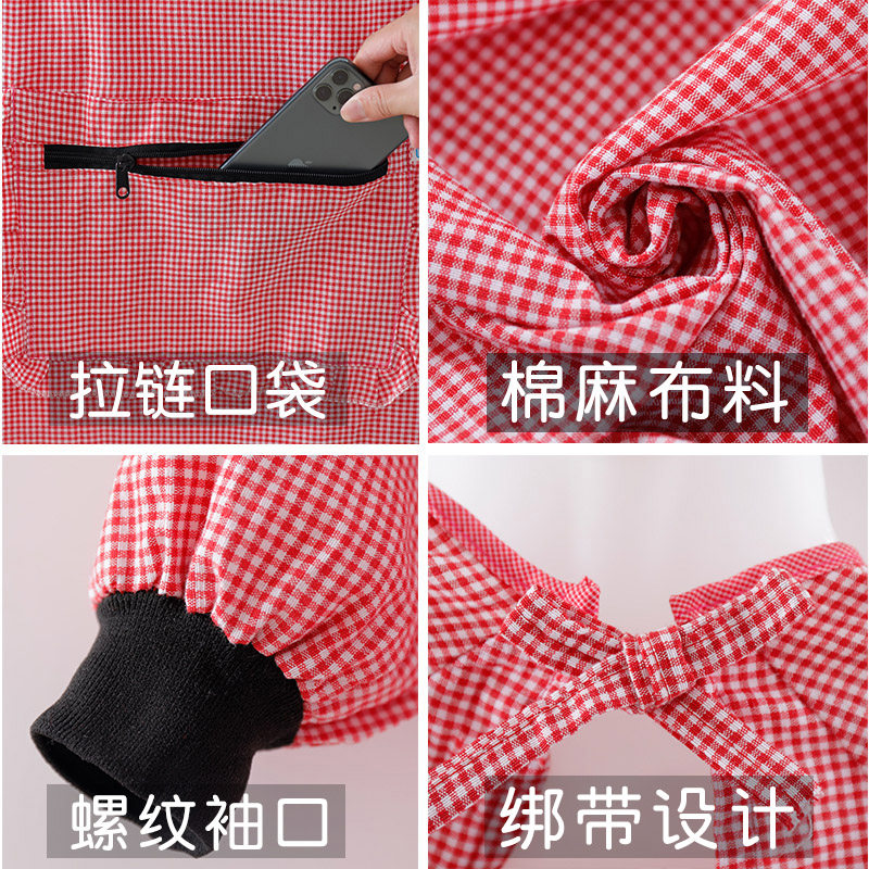 新款棉布耐磨围裙长袖厨房家用防污罩衣透气围腰做饭上班工作服女