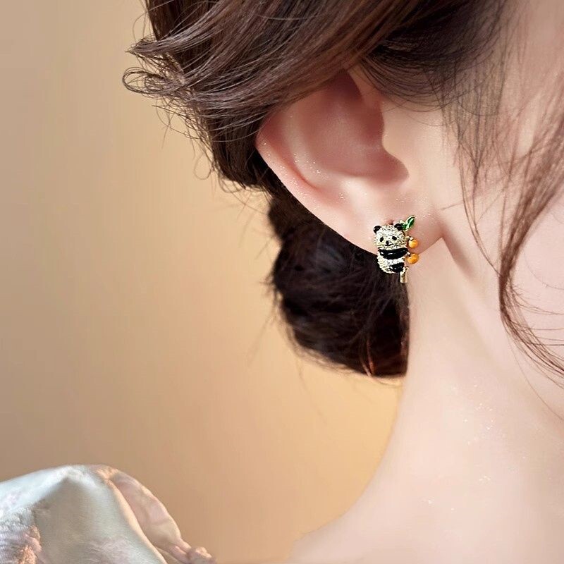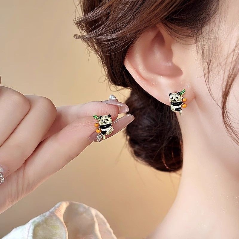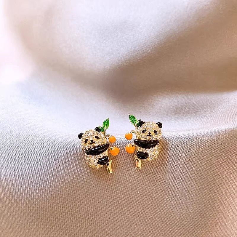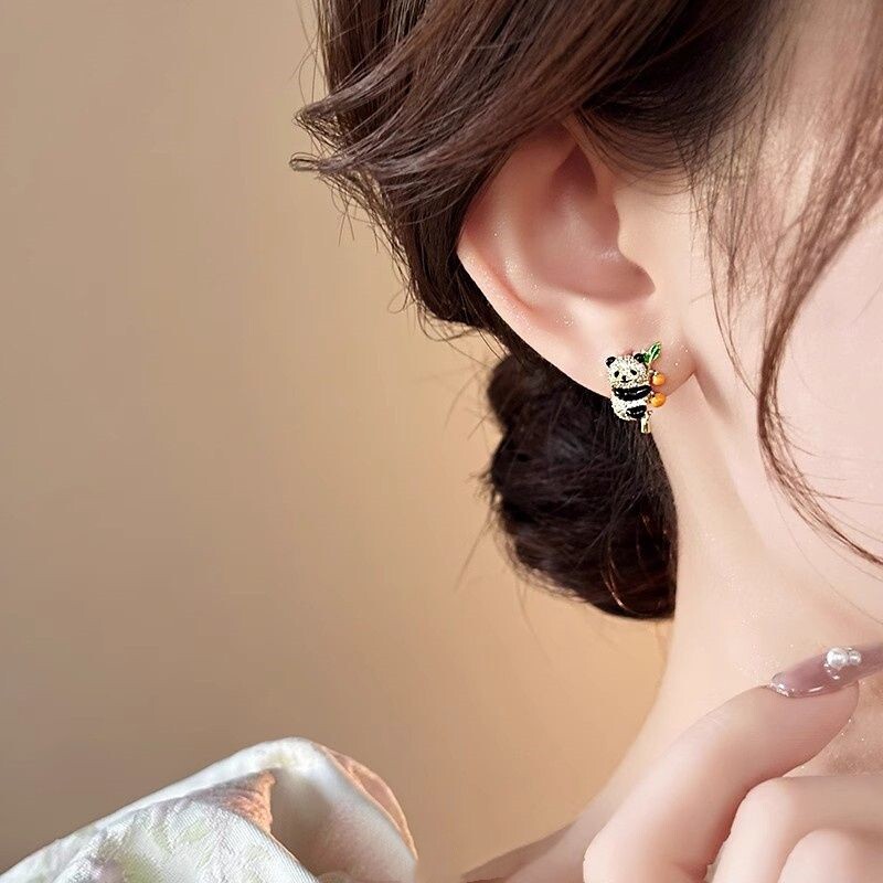 2024新款爆款微镶锆石小熊猫柿柿如意耳钉女小众独特耳环精致耳饰