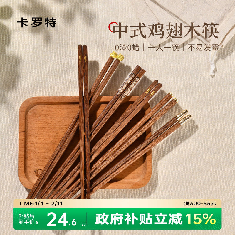 卡罗特筷子家用高档抗菌防霉家庭专人专用鸡翅木长筷子油炸耐高温