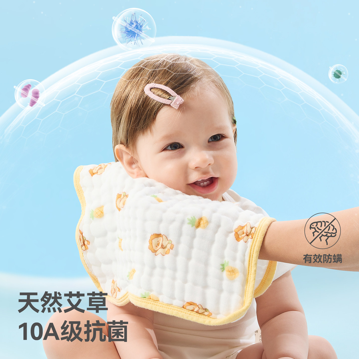 babycare口水巾新生婴儿宝宝口水兜纱布花瓣围嘴儿童围嘴围兜方巾