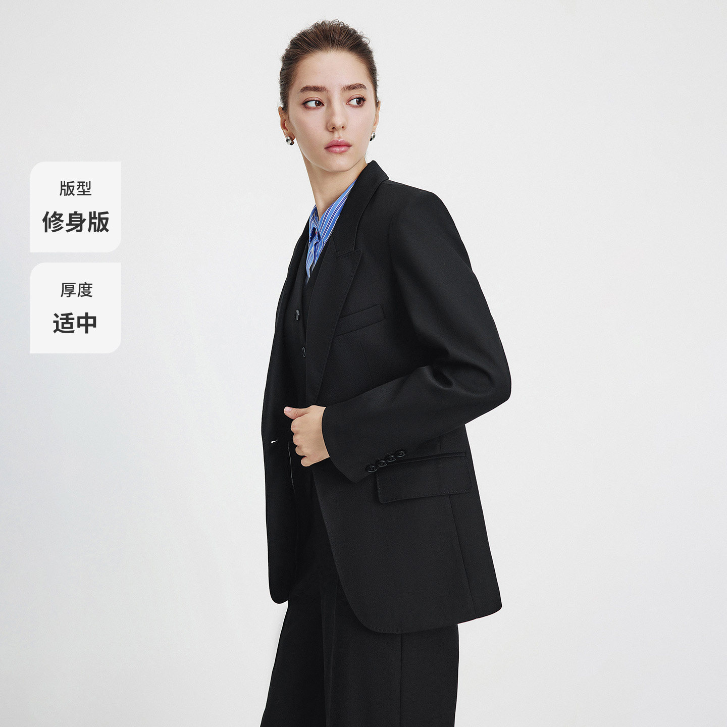 高级感黑色西装外套女2025年开春新款韩版宽松小个子休闲西服上衣