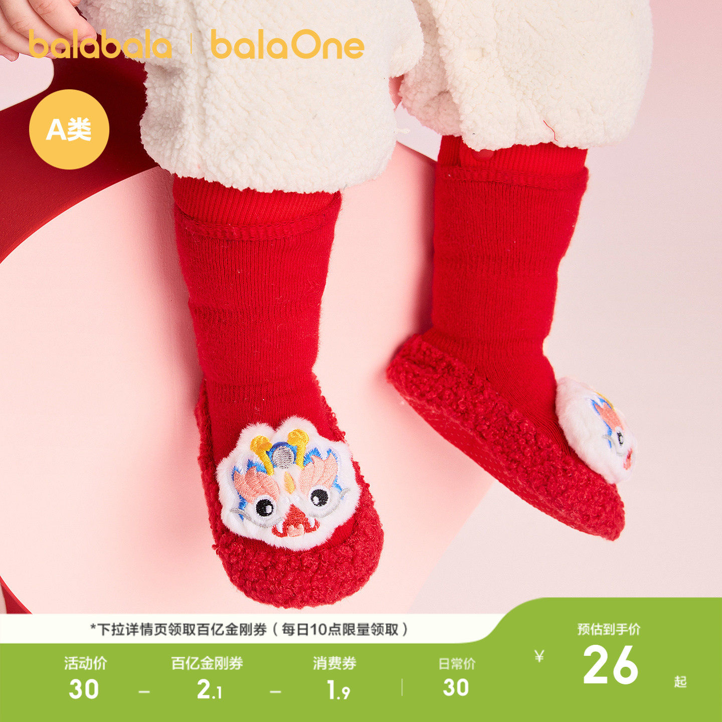 巴拉巴拉儿童袜子男女童春婴幼儿地板袜保暖学步防滑红色本命新年