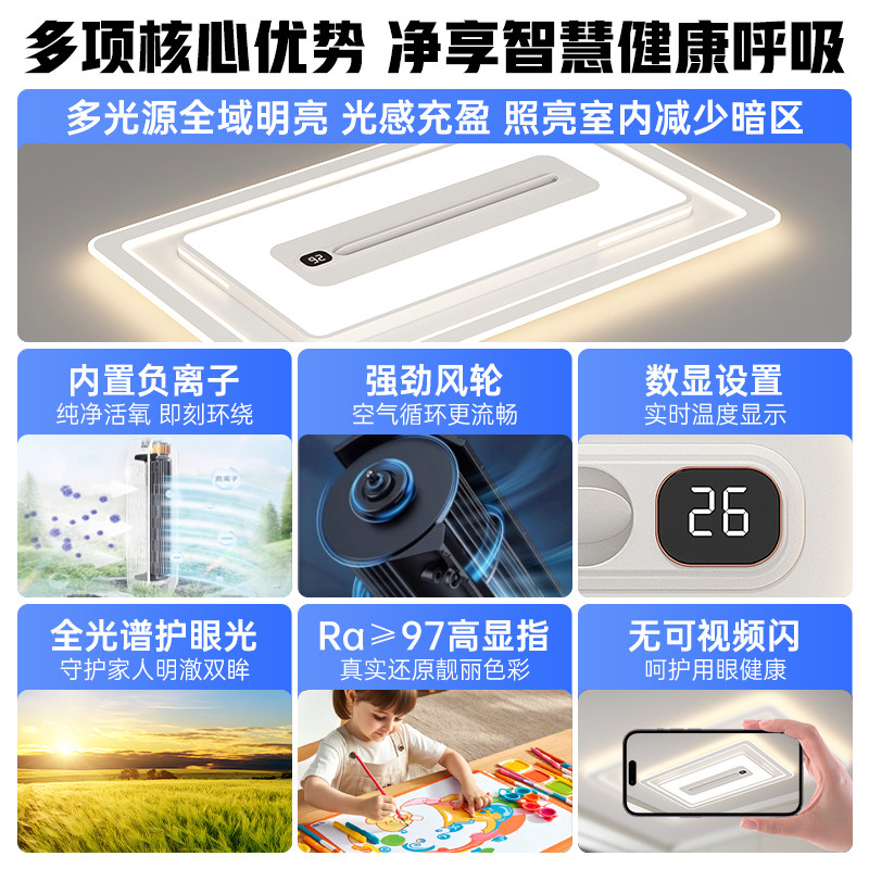 长城灯具客厅吸顶灯2026新款无叶风扇灯简约卧室餐厅吊扇灯电扇灯