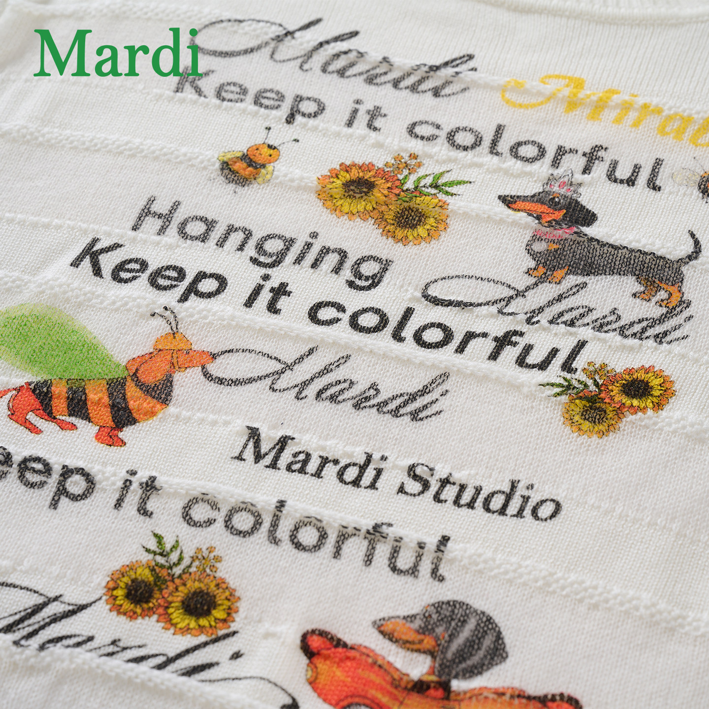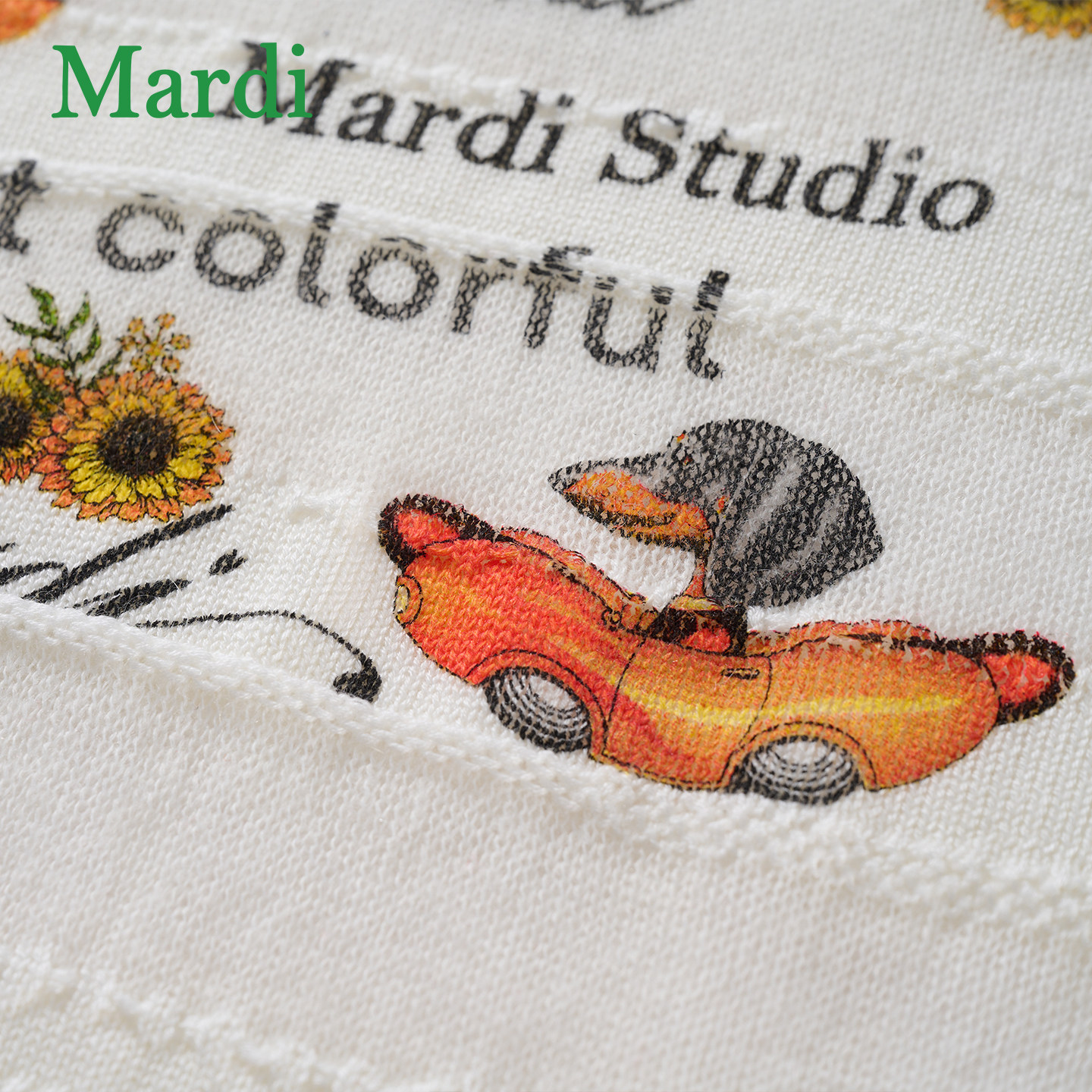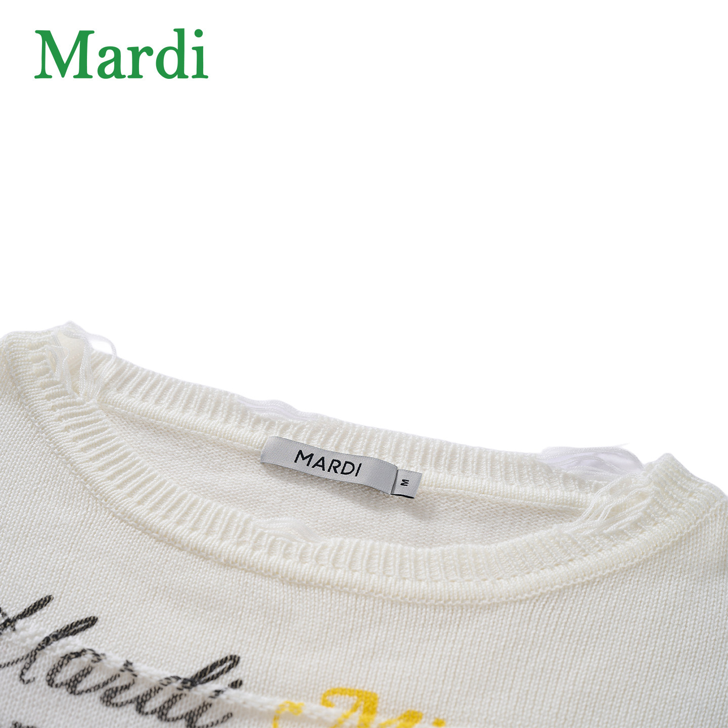 MARDI卡通时尚针织衫女白色破洞设计长袖上衣童趣风动漫通勤风女