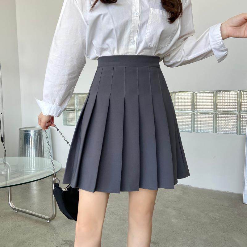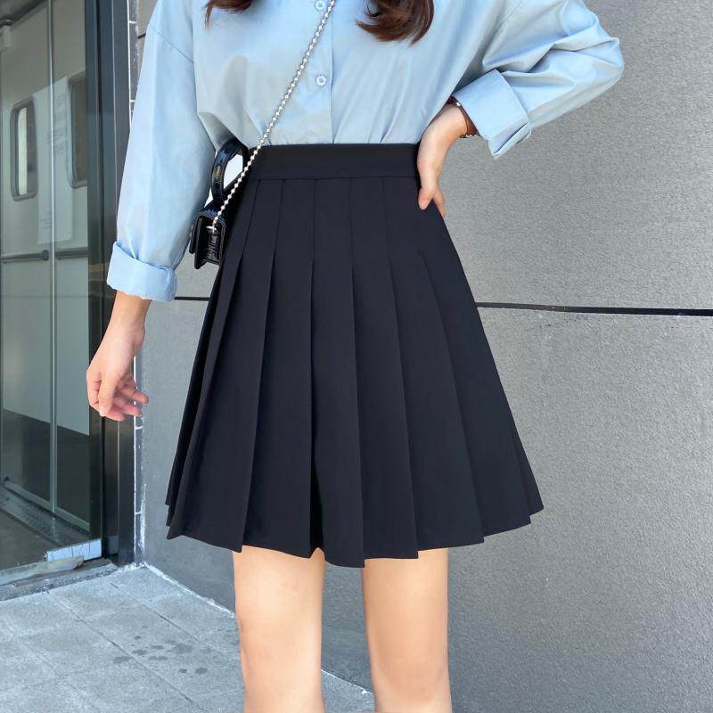百褶裙女小个子夏季新款高腰显瘦半身裙纯色大码学院风jk短裙套装