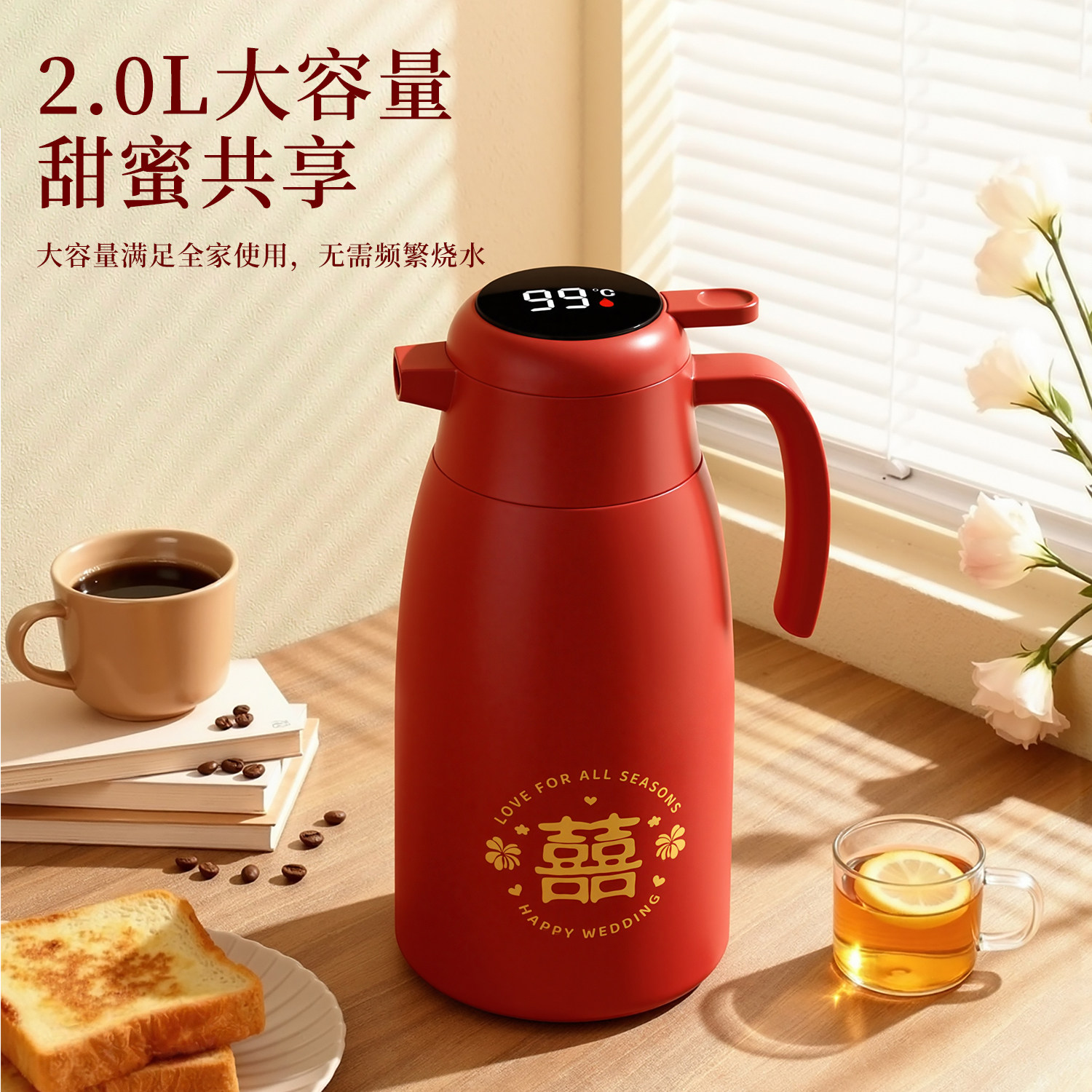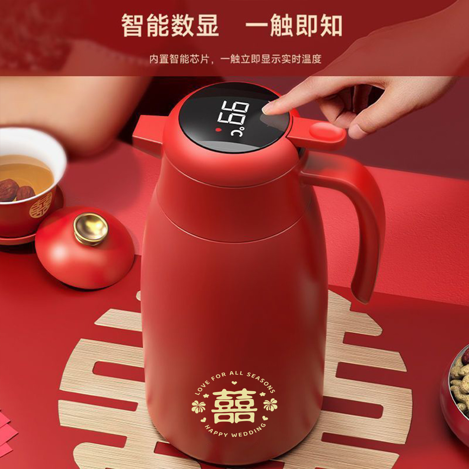 保温壶结婚陪嫁喜壶一对不锈钢暖壶红色水壶家用大容量开热水瓶