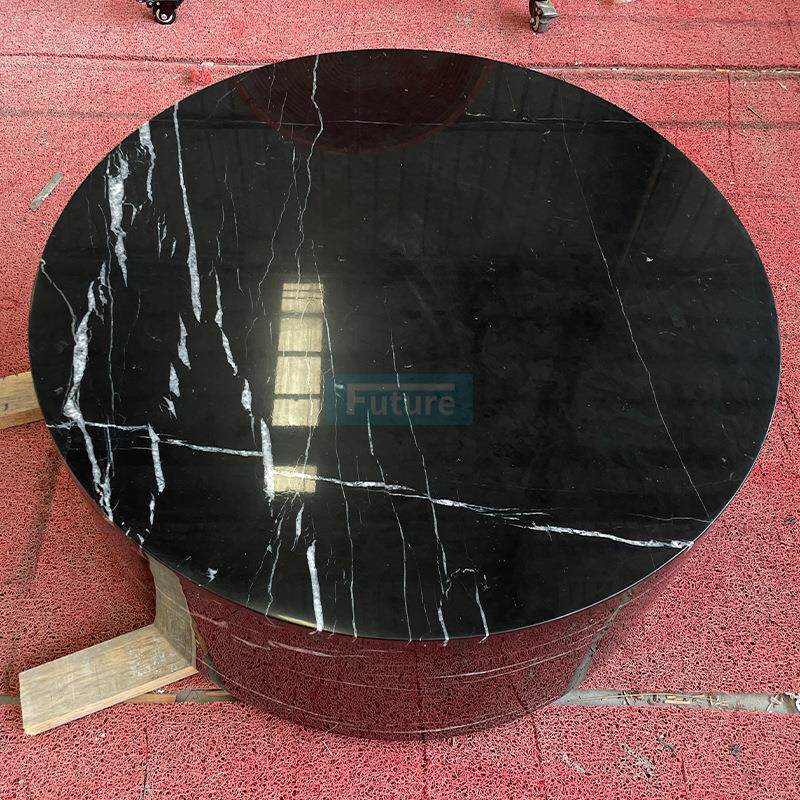 天然大理石黑白根圆形咖啡桌现代简约轻奢咖啡桌客厅茶几边几家用