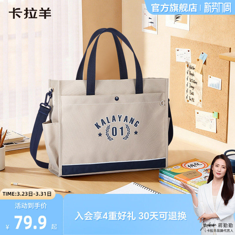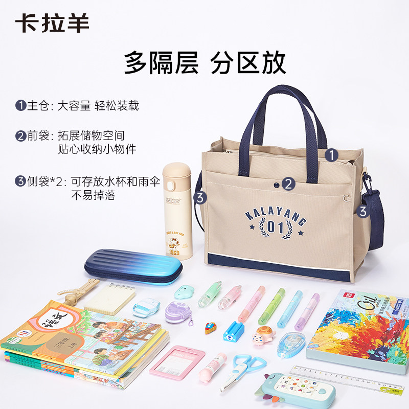 卡拉羊多功能大容量补习袋防泼水耐磨易打理书本斜挎帆布袋轻便多隔层学习文具手提收纳包