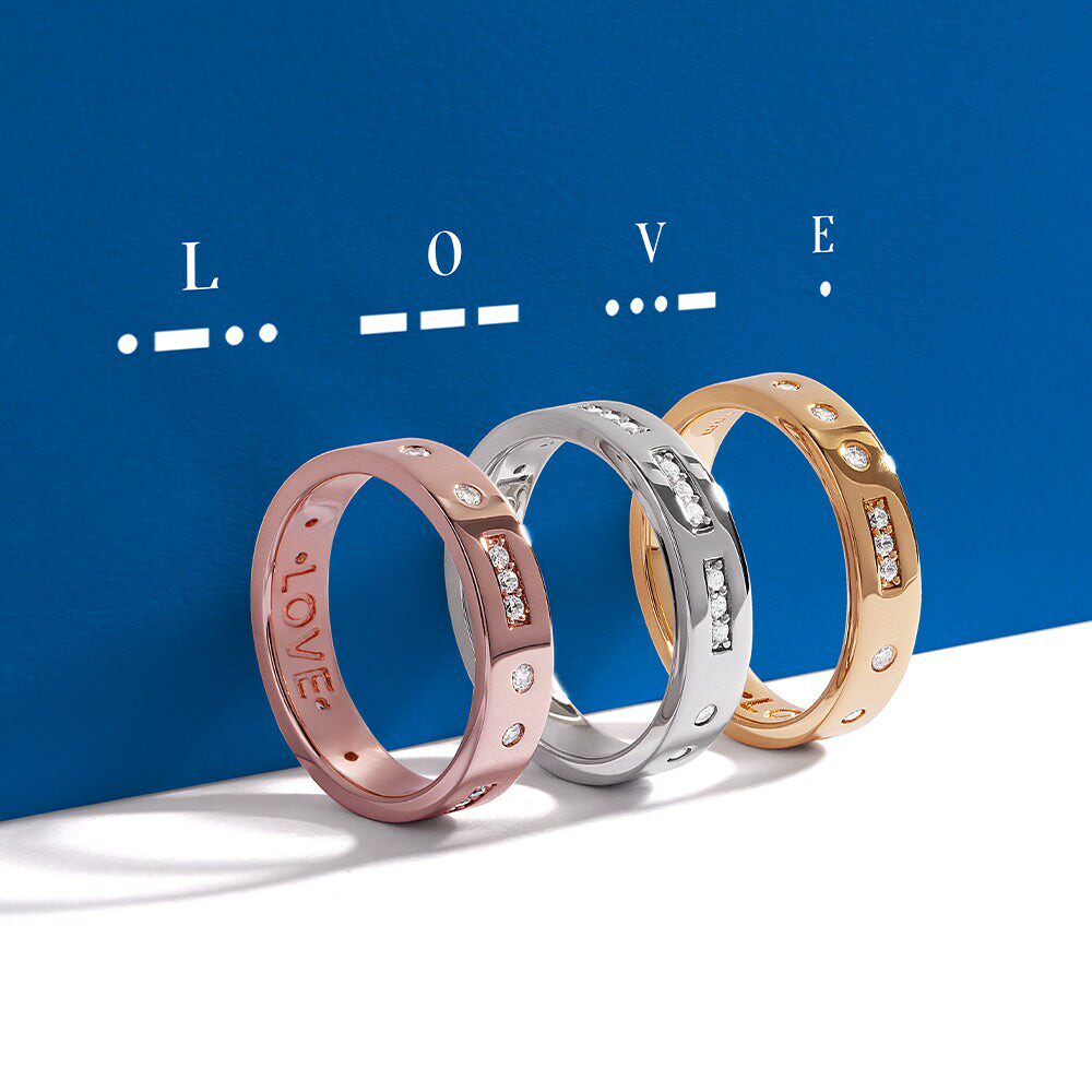 【圣诞礼物】APM Monaco摩斯密码戒指女款纯银小众男女情侣对戒