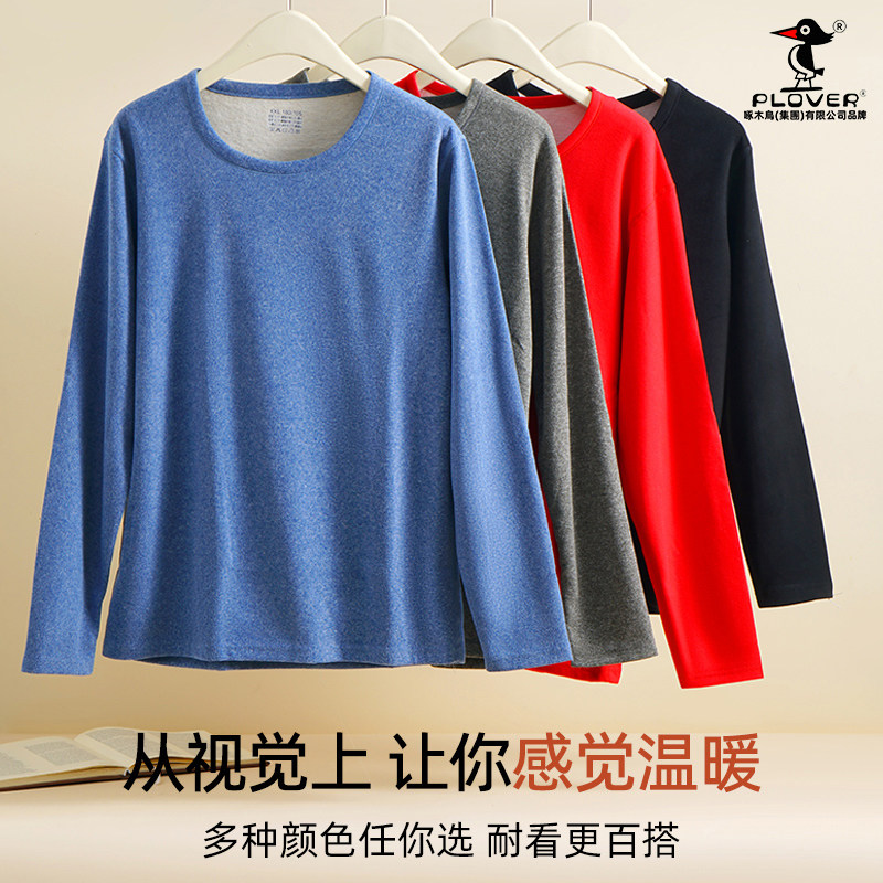 PLOVER德绒保暖内衣男套装冬季加绒加厚男士秋衣秋裤打底红色氨纶