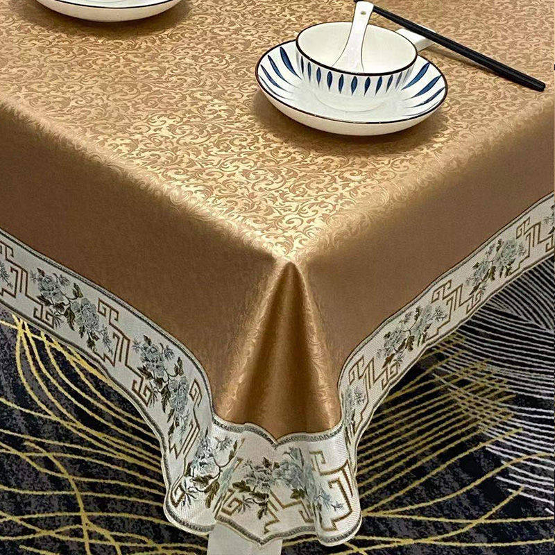 桌布防水防油免洗防烫长方形餐桌布茶几垫塑料台布套客厅烫金桌布