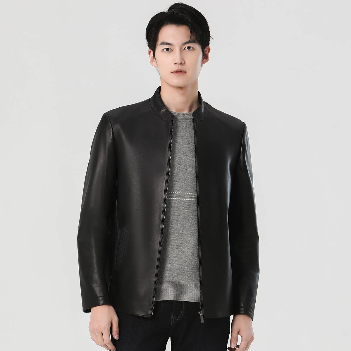 【羊皮】圣得西男士皮衣2025冬季款中青年立领皮夹克外套