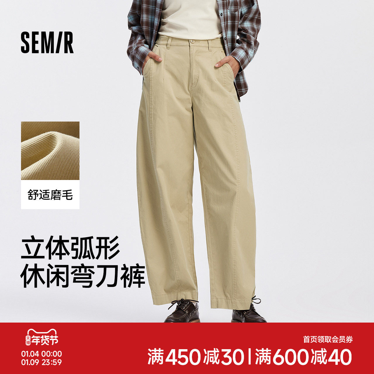 [商场同款]森马休闲裤女宽松长裤2025新款秋季裤子磨毛分割弯刀裤